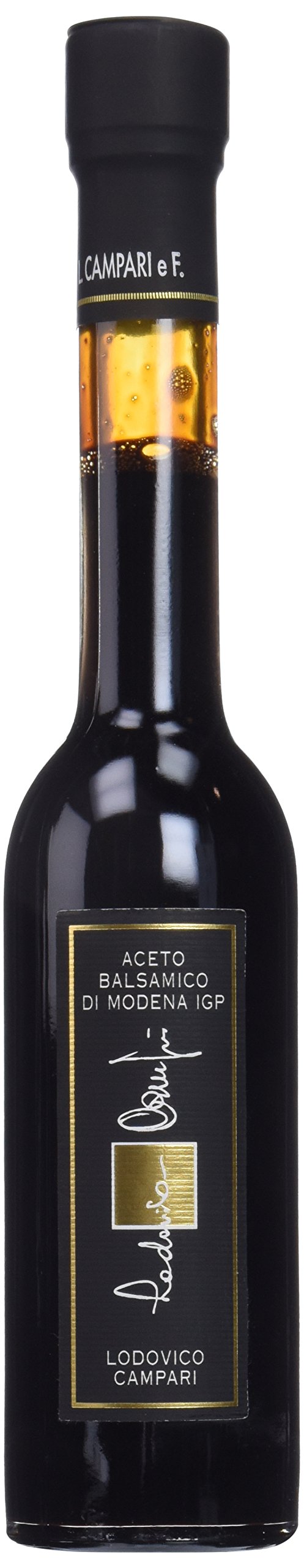 - Q: What are the dimensions and size of the Campari Balsamic Vinegar bottle? A: The bottle of Campari Balsamic Vinegar contains 8.5 fluid ounces (250 ml) and has dimensions of approximately 2.52 inches in length and 2.45 inches in width.
