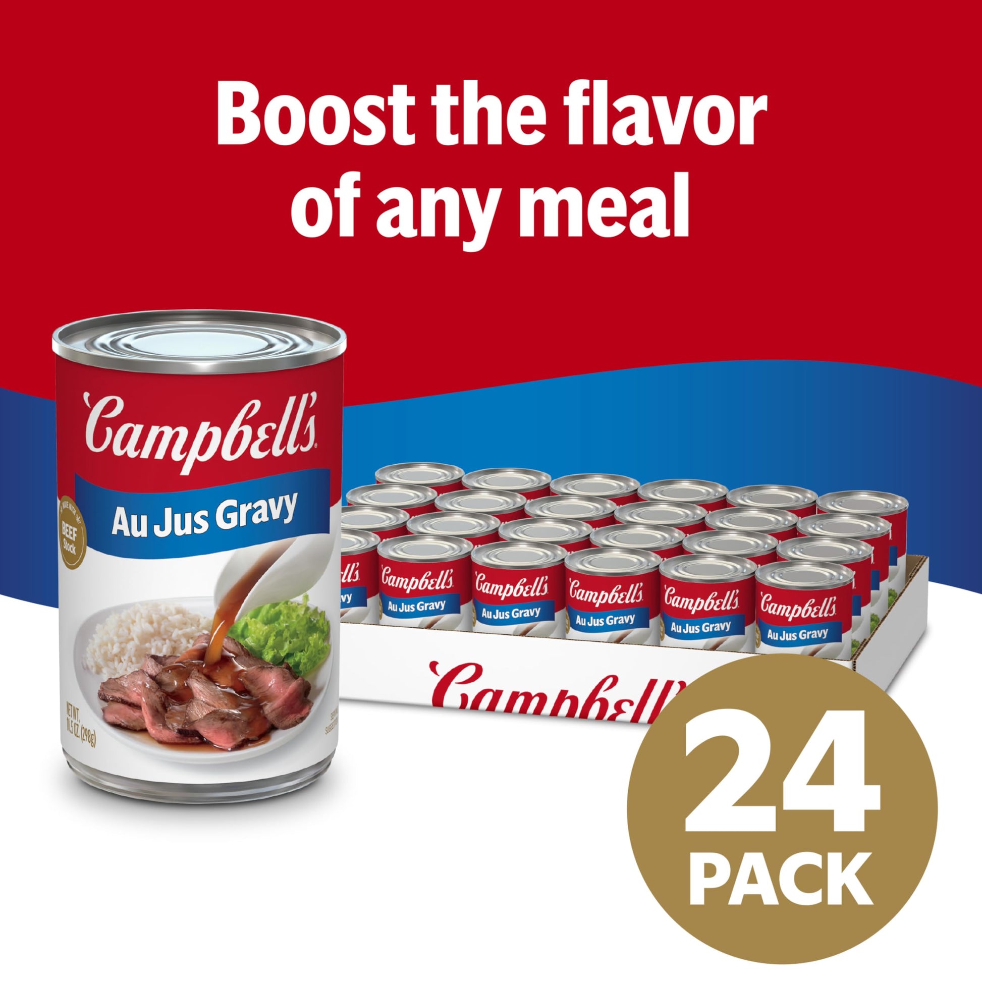 Elevate Any Meal, Any Day Of The Week With Campbell'S Au Jus Gravy. Made With Rich, Flavorful Beef Stock And Spices, This Sauce Adds Quick And Easy Savory Flavor To Any Meal. Ready In Minutes, On The Stove, Or In The Microwave, This Versatile Condiment Is Ideal For Weeknight French Dip Sandwiches And Holiday Prime Rib. Use This Convenient Canned Gravy As A Base For Sauces, Or Drizzle On Mashed Potatoes. Each 10.5 Oz Can Contains Five Servings For The Entire Family To Enjoy. Elevate Your Routine With Campbell'S - Delicious Made Easy. In Addition To Au Jus, Campbell'S Gravy Is Available In Beef, Turkey, Chicken And Mushroom Flavors.