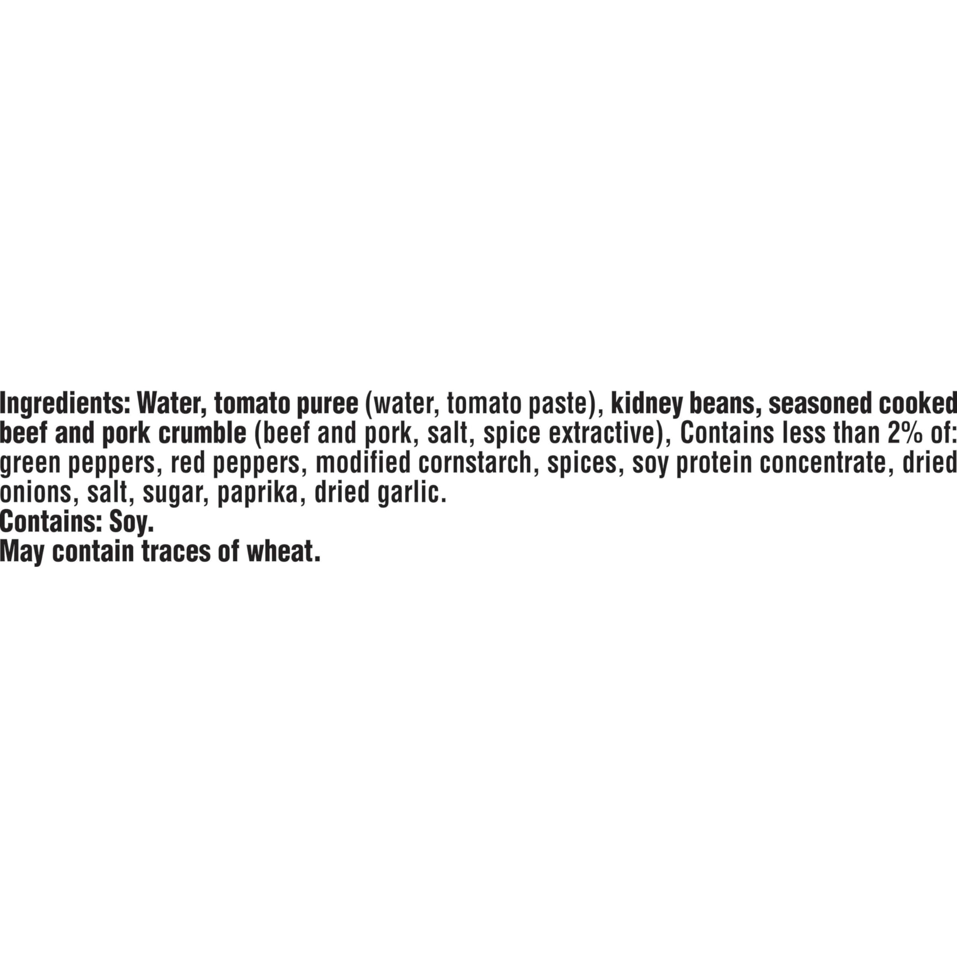 Campbell's Chunky Hot & Spicy Beef & Bean Chili isnt just tasty-it's made to work as hard as you do. With never-ending big flavors and bold ingredients, this fiery take on a comfort food classic is capable of fueling the heartiest appetite. This ready-to-eat spicy chili packs the punch with kidney beans, seasoned beef, red and green peppers, onions and garlic in a hearty inferno of paprika seasoning. Each can has 13 grams of protein. Just pop this canned chili with beans in a microwave-safe bowl, heat and enjoy. Or, warm it over the campfire on your outdoor adventures. Whether youre looking for quick and easy to microwave chili for home or something to take on the go, Campbells has you covered. The chili can is recyclable for easy disposal. Enjoy Campbells Chunky Hot & Spicy Beef & Bean Chili. In addition to Hot & Spicy Beef & Bean Chili, Campbell's Chunky Chili is also available in Chunky Chili Mac and Chunky Chili with Beans.