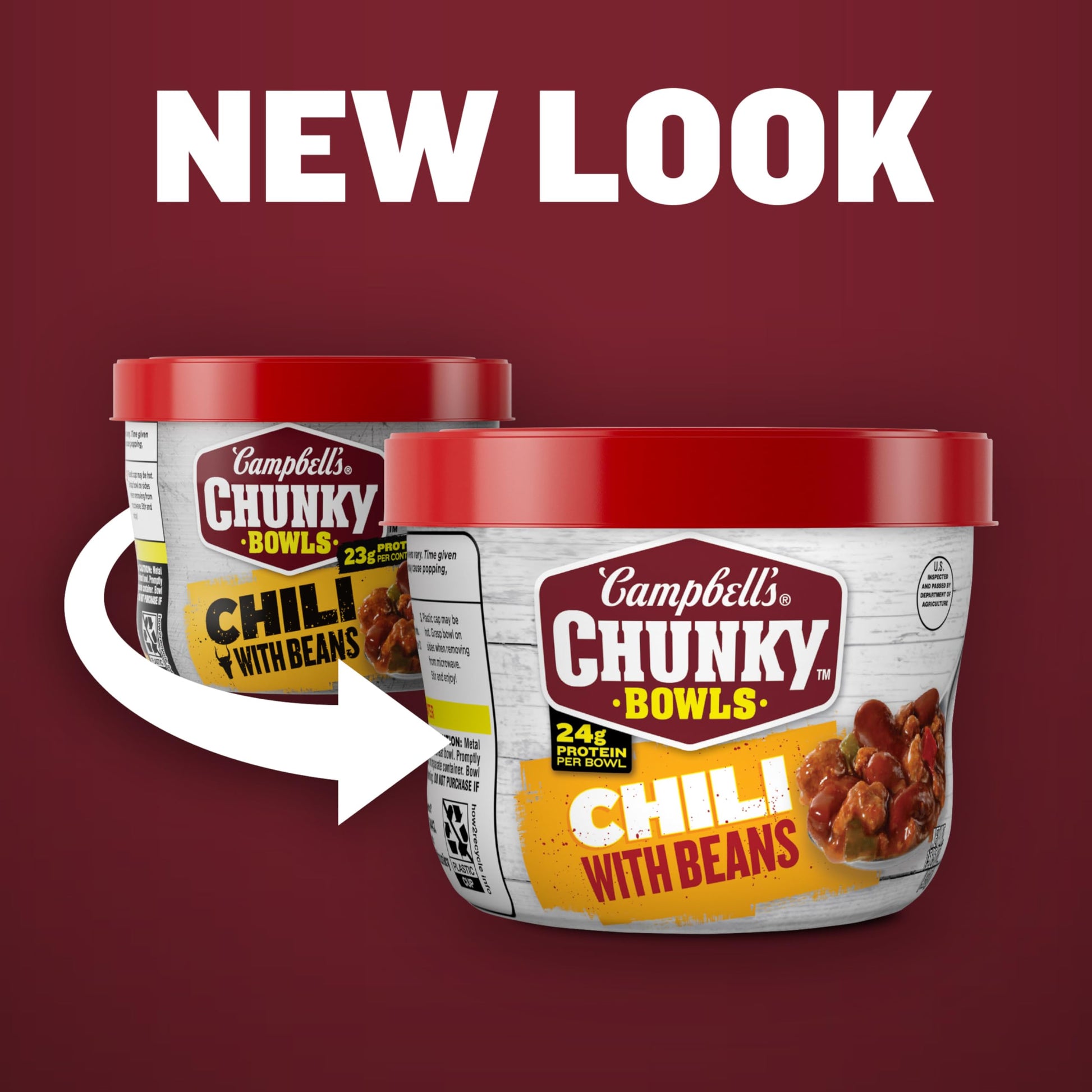 Campbells Chunky Hot & Spicy Chili With Beans Isnt Just Tasty-It'S Made To Work As Hard As You Do. With Never-Ending Big Flavors And Bold Ingredients, This Fiery Take On A Comfort Food Classic Is Capable Of Fueling The Heartiest Appetite. This Ready-To-Eat Spicy Chili Is Crafted With Hearty Ingredients Like Kidney Beans, Seasoned Beef And Pork, Red And Green Peppers, And Spices In A Delicious Tomato Puree. Each Bowl Has 23 Grams Of Protein. Packaged In A Convenient Microwavable Bowl, This Hot Chili Requires No Extra Dishes To Enjoy. Just Open The Instant Chili Bowl And Pop In The Microwave When You'Re Hungry And Crunched For Time. Whether Youre Looking For Quick And Easy To Microwave Chili For Home Or Something To Take On The Go, Campbells Has You Covered. Enjoy Campbells Chunky Hot & Spicy Chili With Beans. In Addition To Hot & Spicy Chili With Beans, Campbell'S Chunky Chili Is Also Available In Chili With Beans.