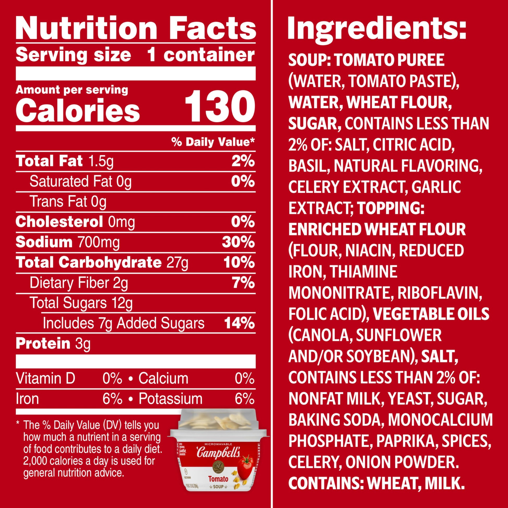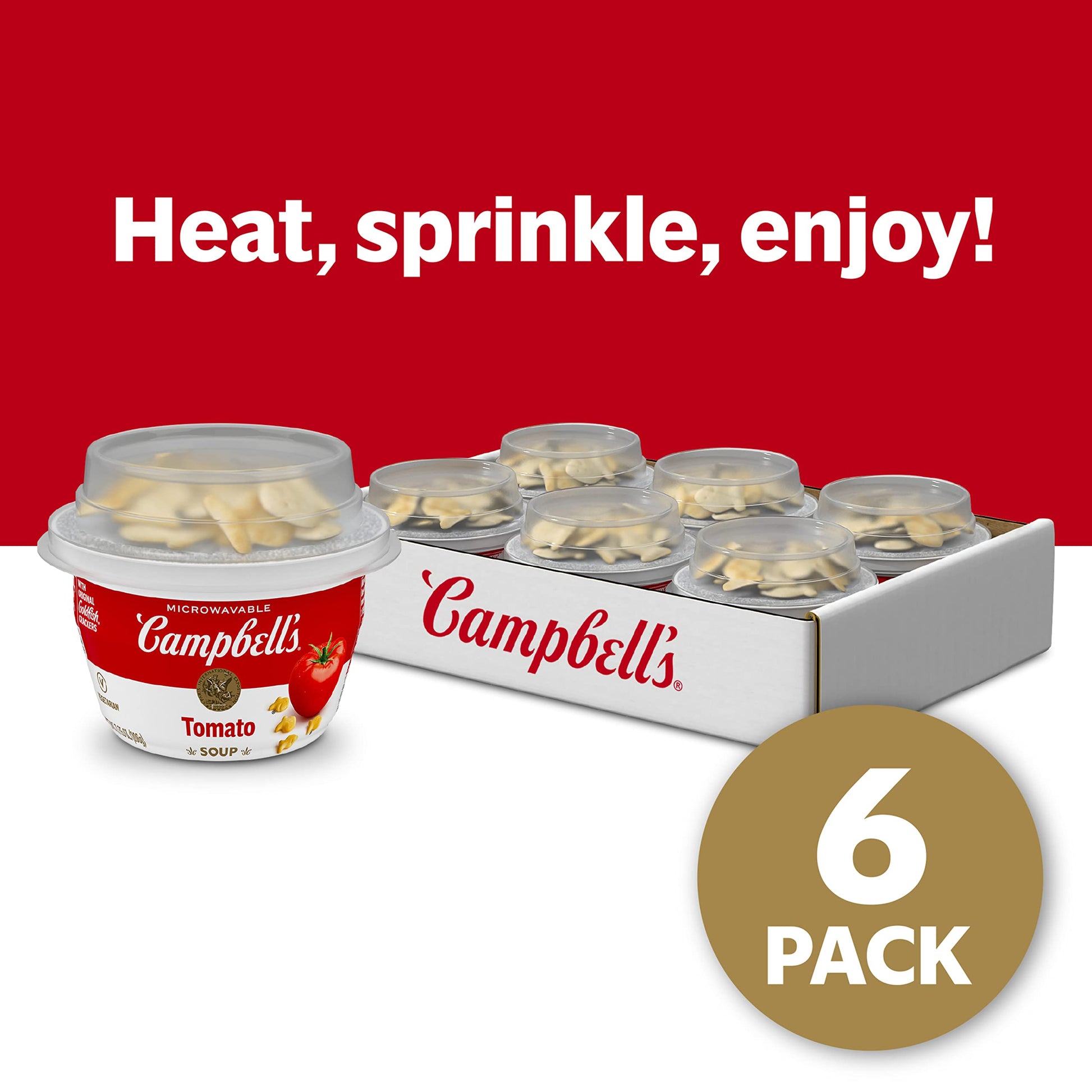 Add A Flavorful Crunch To A Classic Favorite With Campbell'S Classic Tomato Soup With Original Goldfish Crackers. Every Spoonful Of This Comforting Tomato Soup Is Crafted With The Simple, Delicious Ingredients You Grew Up On. The Tangy Taste Of Farm-Grown Tomatoes And Satisfying Crunch Of Goldfish Crackers Make This Soup A Delicious And Nostalgic Choice Anytime, Anywhere. This Vegetarian Soup Is Made Without High Fructose Corn Syrup For A Snack You Can Feel Good About. Just Pop Off The Cracker Pack, Peel Back The Tab And Microwave Uncovered For One Minute. Let This Easy To Microwave Soup Sit For One Minute, Sprinkle In Some Tasty Goldfish Crackers And Enjoy! Take This Soup On The Go For An Easy, Portable Snack Or Part Of A Meal. The Microwavable Soup Bowl Makes It Easy To Take To The Office, School Or On The Road. Embark On Your Next Adventure With Campbell'S Along For The Ride. M'M M'M Good! In Addition To Classic Tomato, Campbell'S Microwavable Bowls Of Soup Are Also Available In Double Noodle With Original Goldfish Crackers And Chicken And Rice With Oyster Crackers.