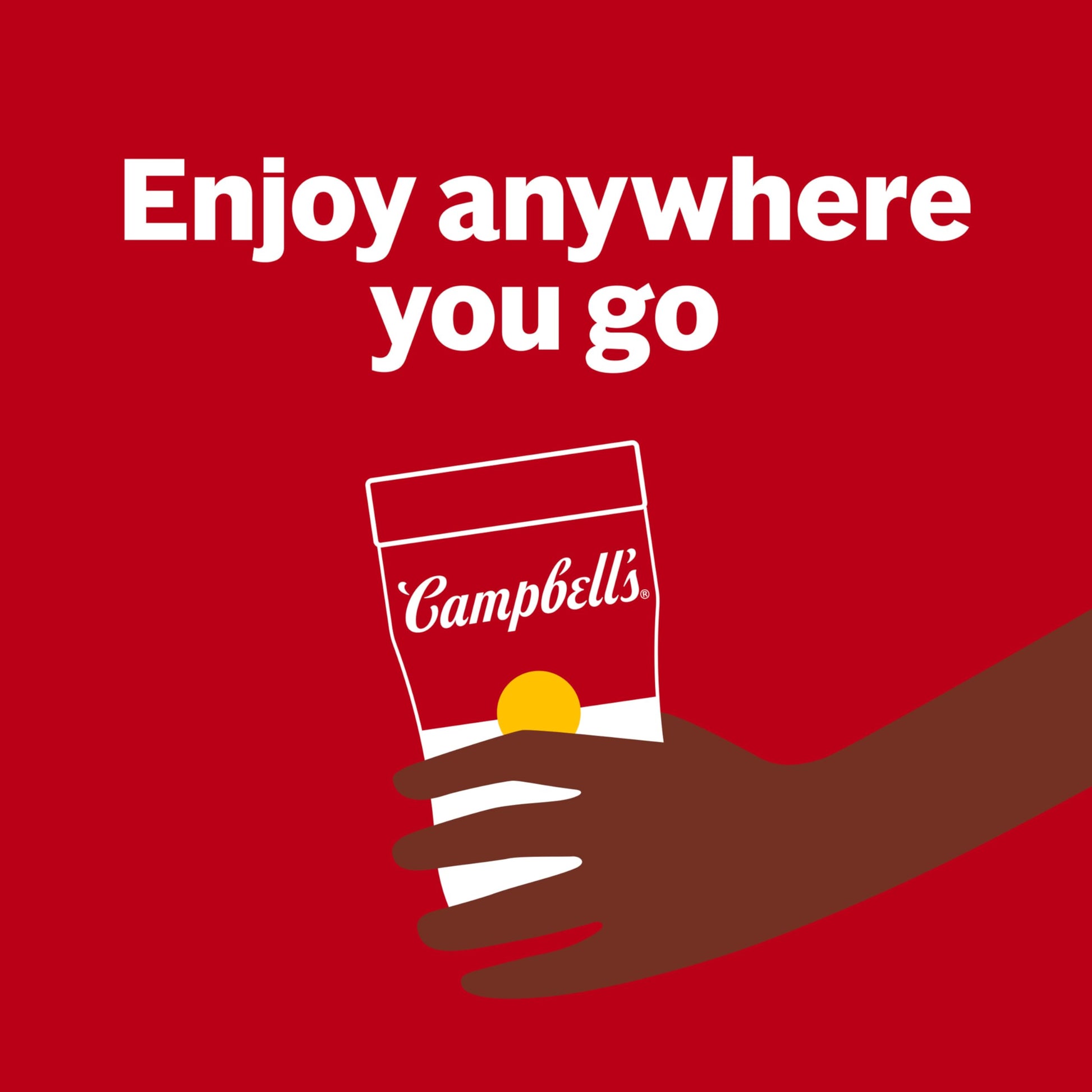 Q: Is Campbell's Sipping Soup suitable for on-the-go meals?A: Yes, Campbell's Sipping Soup is designed for portability. The microwavable cup makes it easy to hold and enjoy, making it a convenient snack or meal option for travel, work, or any adventure.
