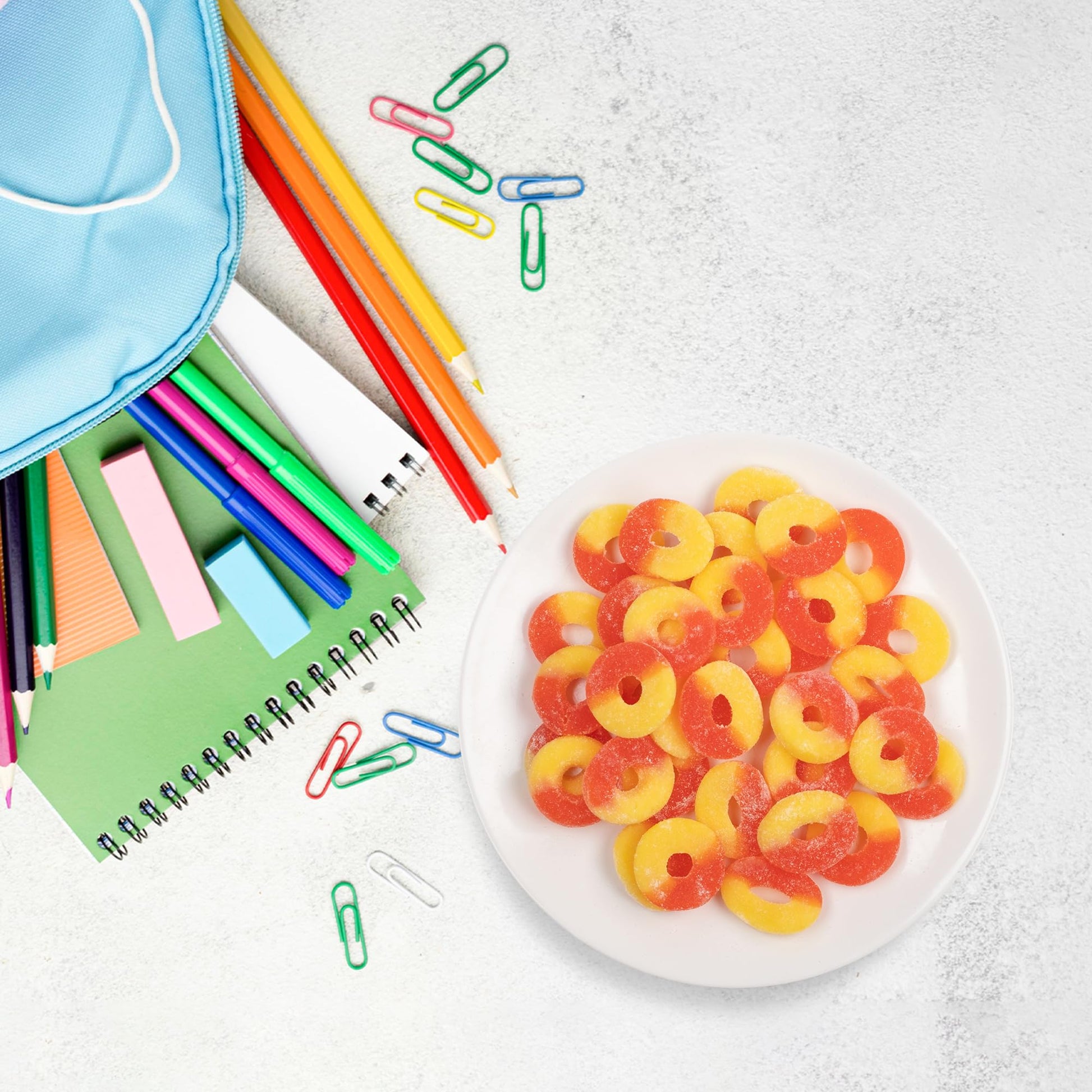Q: What occasions are these gummy candies suitable for?A: These gummy peach rings are versatile and ideal for various occasions, including birthday parties, picnics, movie nights, and office treats. They make a great addition to any celebration or casual get-together.