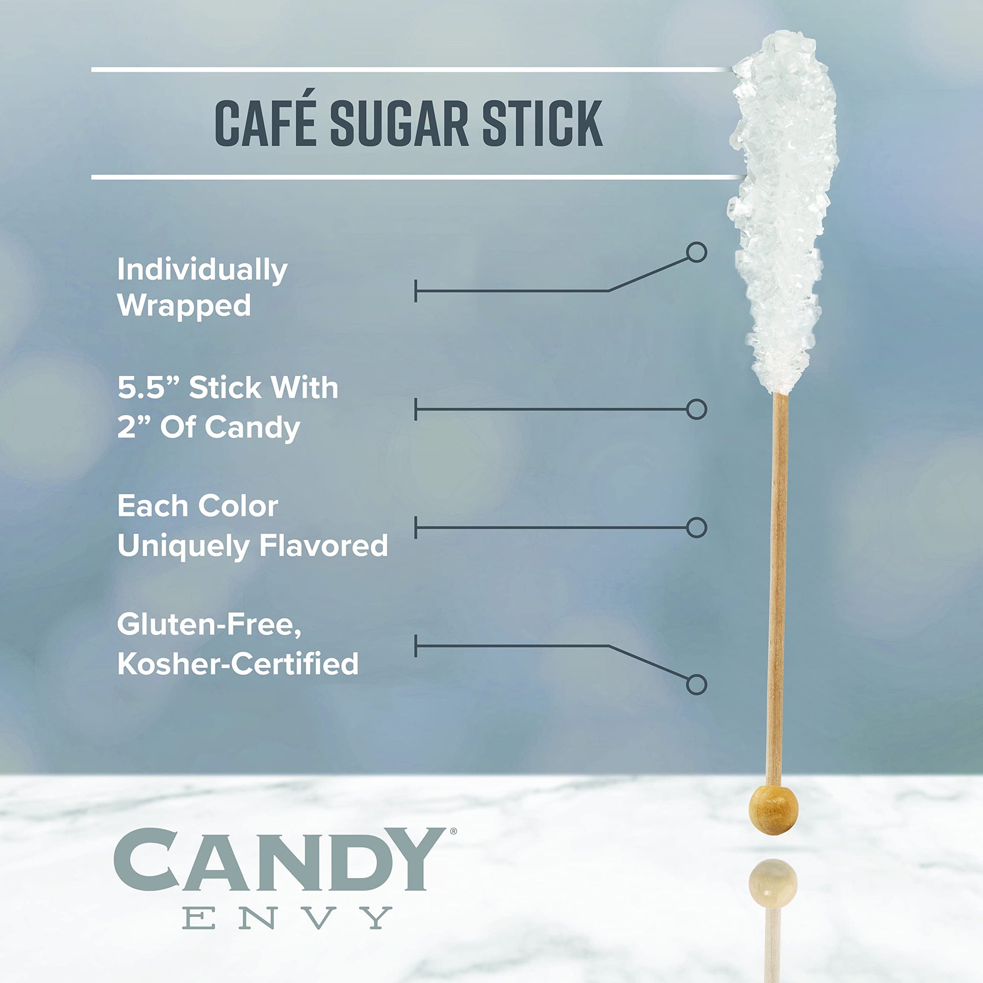 Introducing Candy Envys Individually Wrapped Rock Candy on a Stick, the perfect addition to your coffee and tea experience. These delightful sugar sticks provide a convenient and enjoyable way to sweeten your favorite beverages.