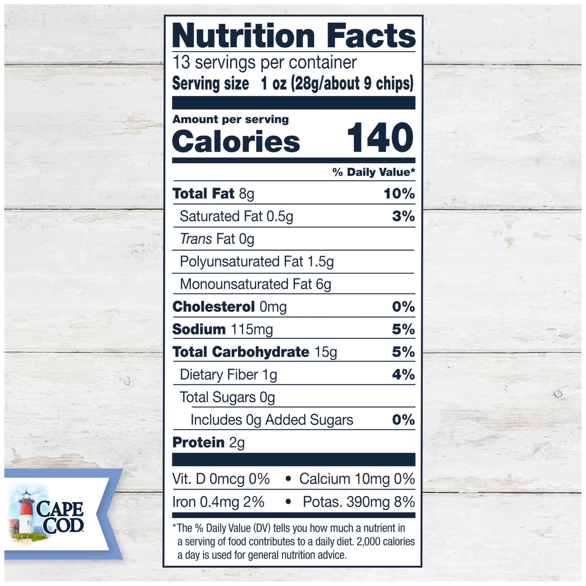 Q: Are Cape Cod Potato Chips suitable for dipping?A: Yes, the uniquely ridged design of Cape Cod Potato Chips is crafted to hold up to dips, making them perfect for sharing at gatherings and enhancing your snacking experience.