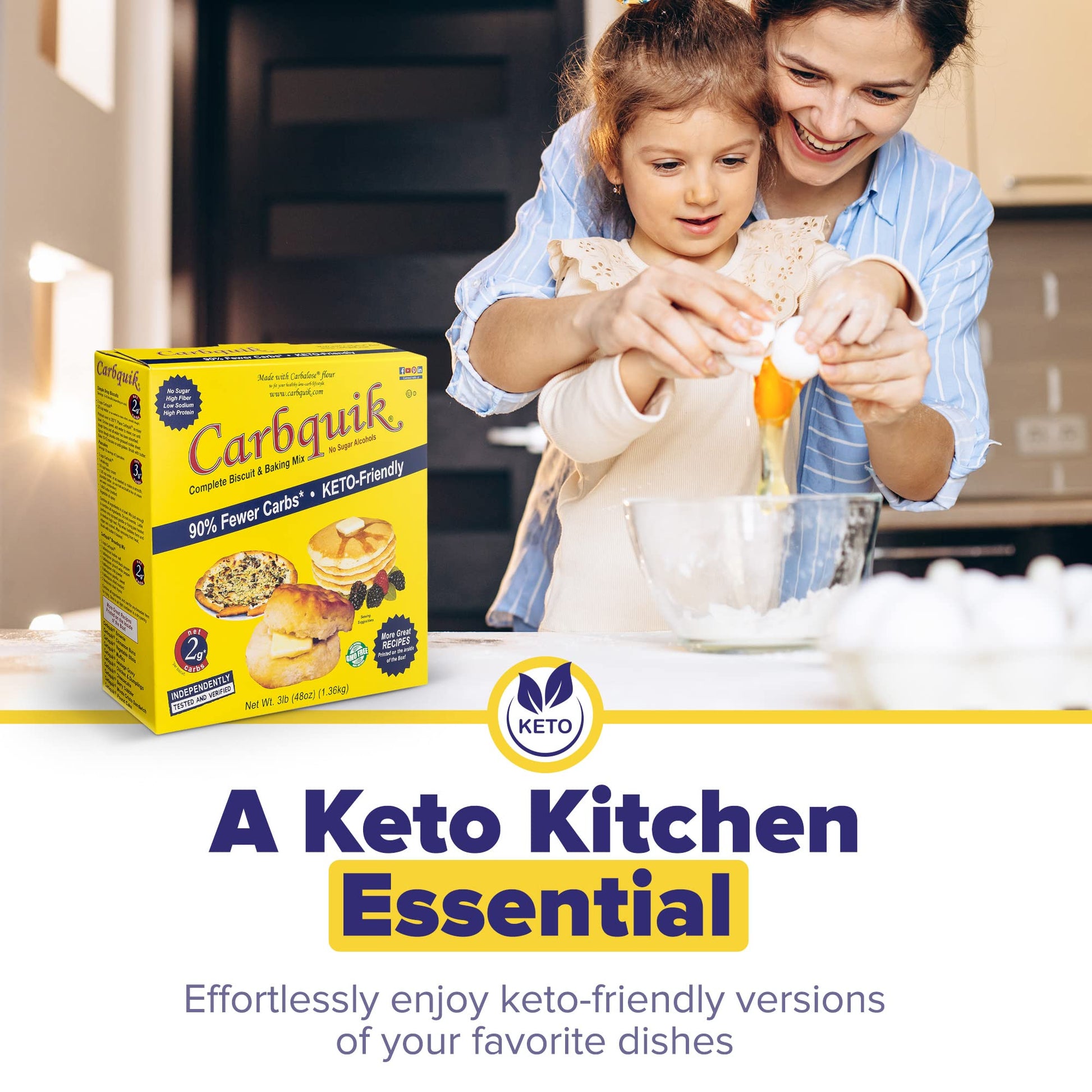 Q: What are the main benefits of using Carbquik Baking Mix?A: Carbquik Baking Mix offers 90% fewer carbs than traditional baking mixes, with only 2g net carbs per biscuit. It is sugar-free, high in fiber, and low in sodium, making it a great choice for low-carb diets.