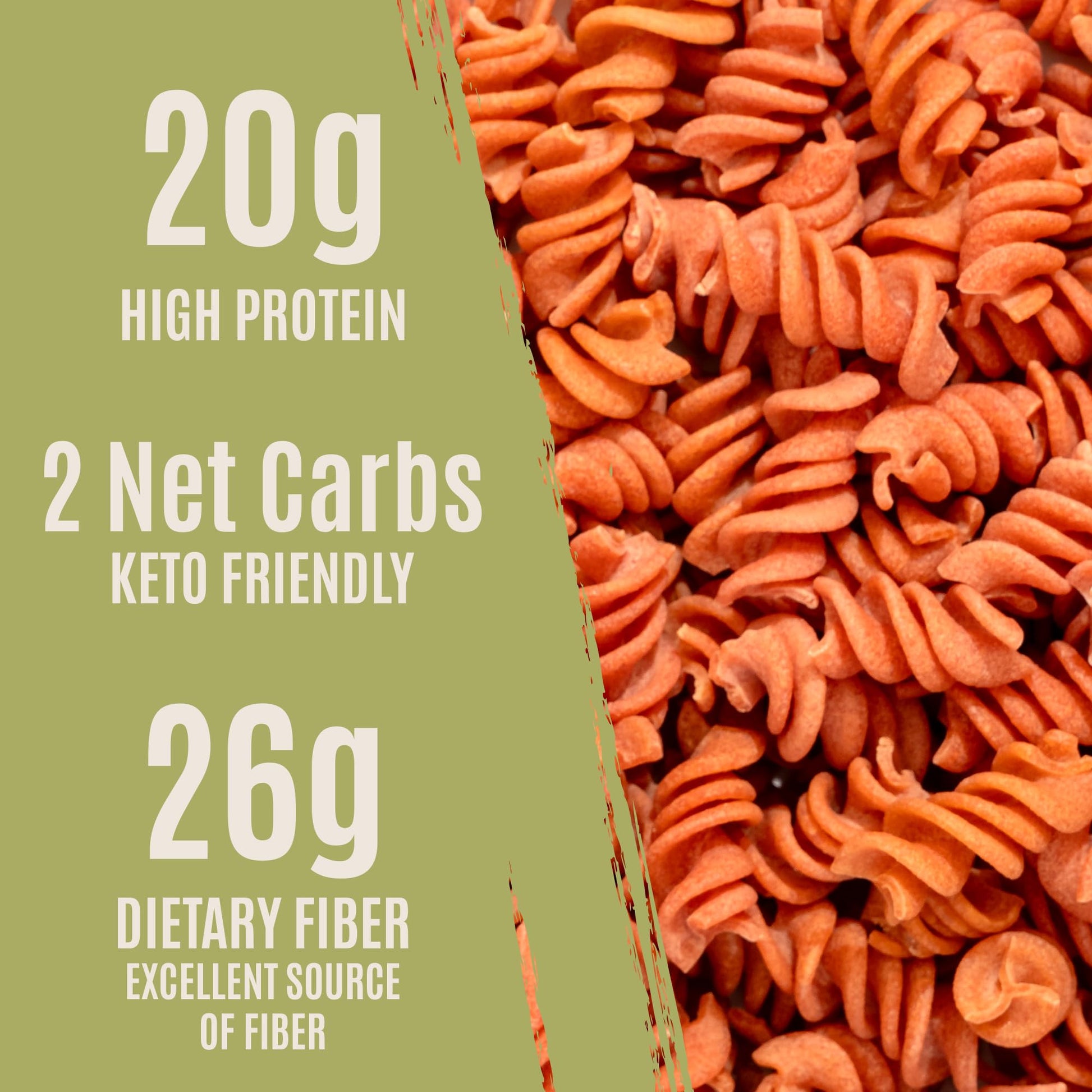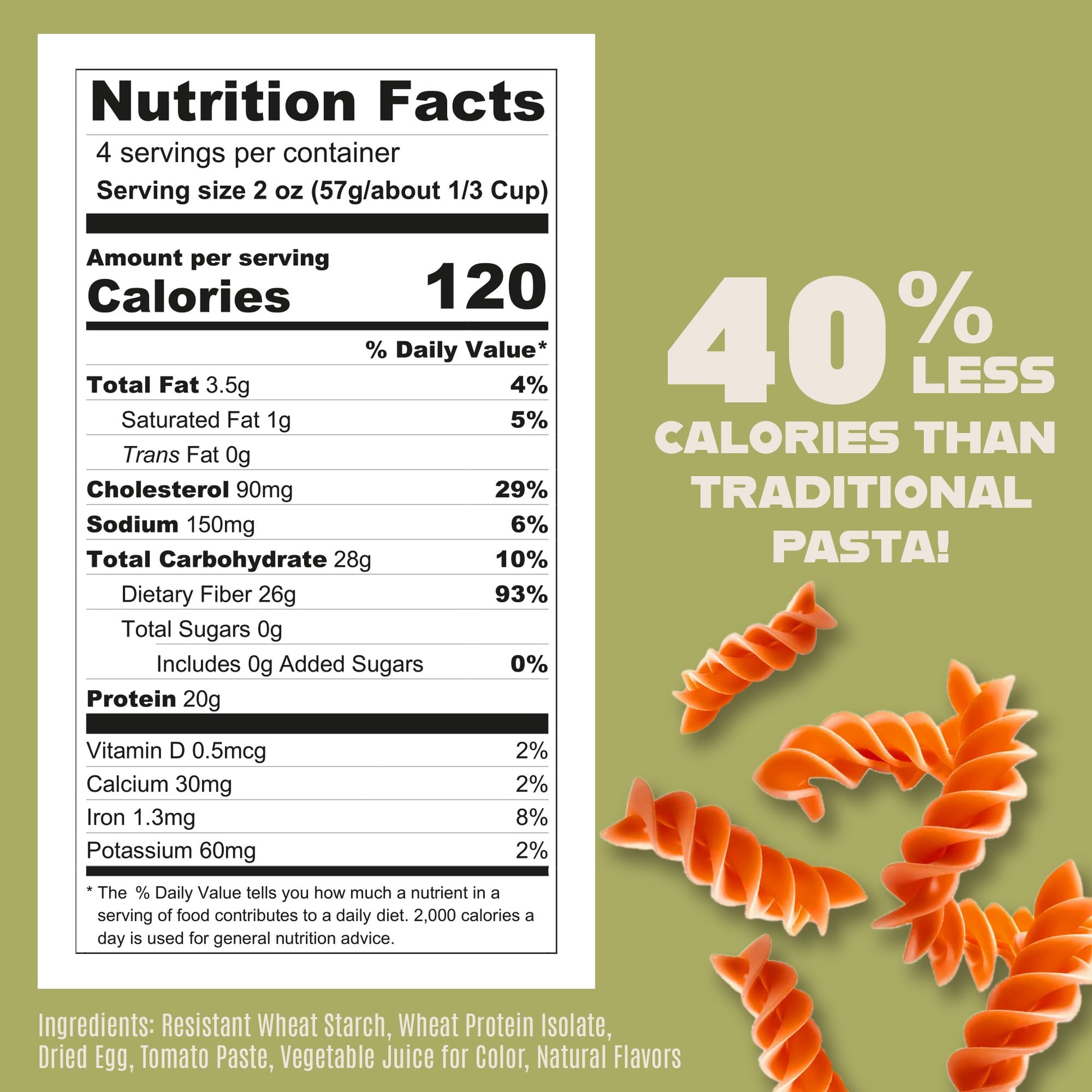 - Q: What are the nutritional benefits of Care Free Kitchen Sundried Tomato Rotini? A: Care Free Kitchen Sundried Tomato Rotini offers 20g of high protein, only 2g of net carbs, and 26g of dietary fiber per serving. This makes it an ideal choice for those following a low carb or keto diet, helping to fuel your body while keeping you satisfied.