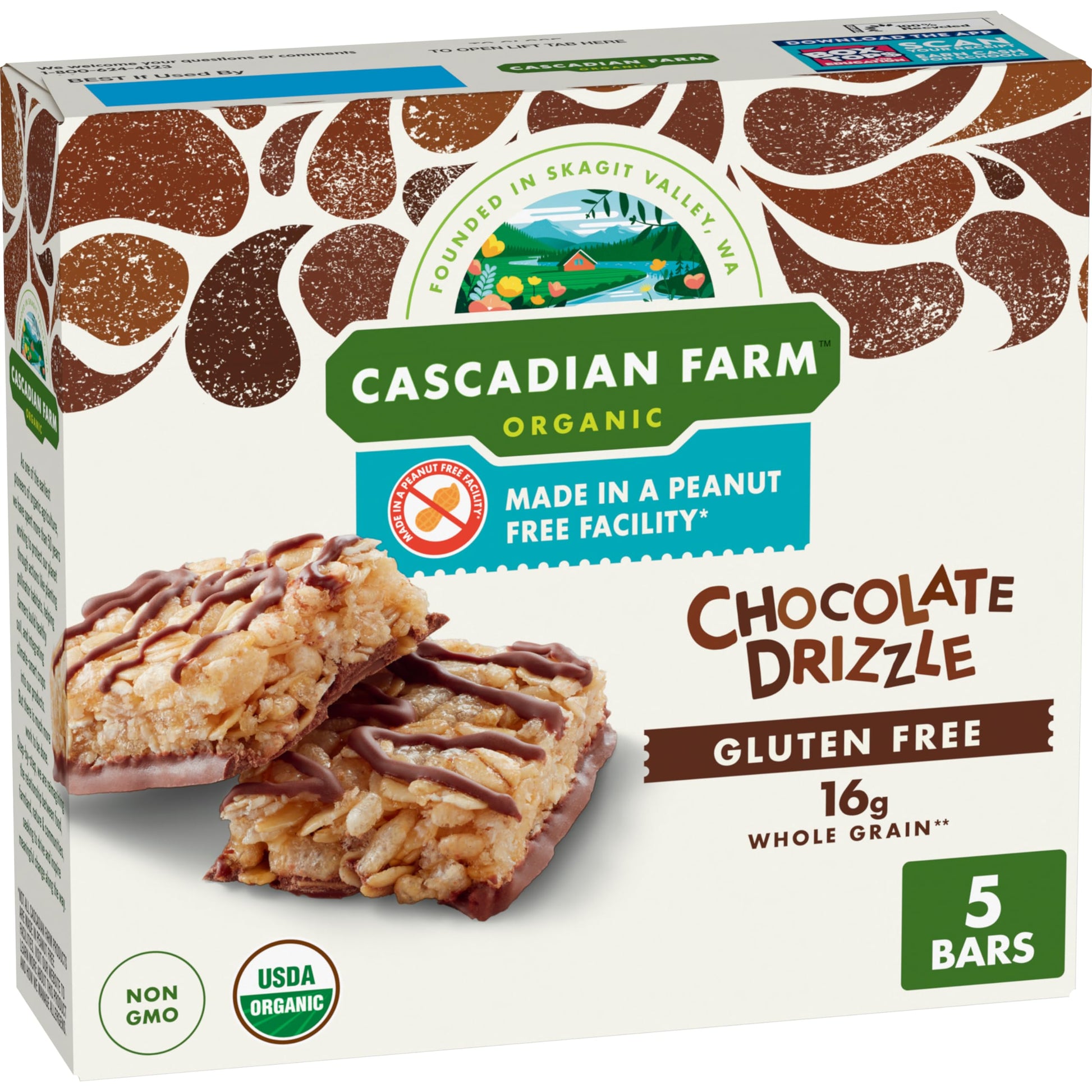 A Wholesome Snack Made In A Peanut Free Facility Cascadian Farm Chocolate Drizzle Chewy Granola Bar, Is Organic, Non-Gmo, Gluten Free And Has 16G Of Whole Grains