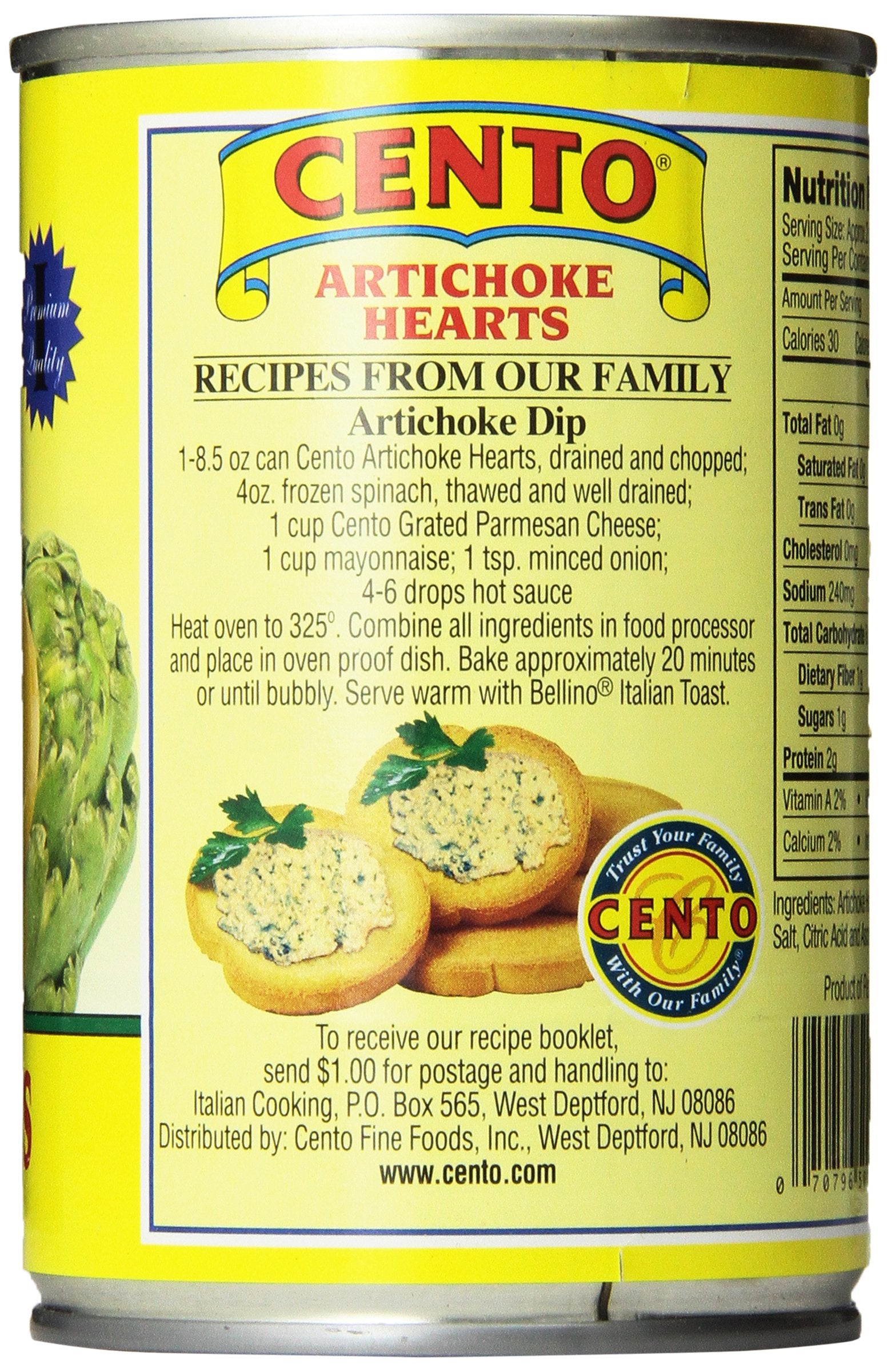 Cento Artichoke in Brine have a buttery texture and earthly flavor, ready to use either whole or cut into pieces. Pair with pasta, as a topping on your favorite pizza, or with traditional Italian focaccia. 5-7 artichoke hearts in each can.