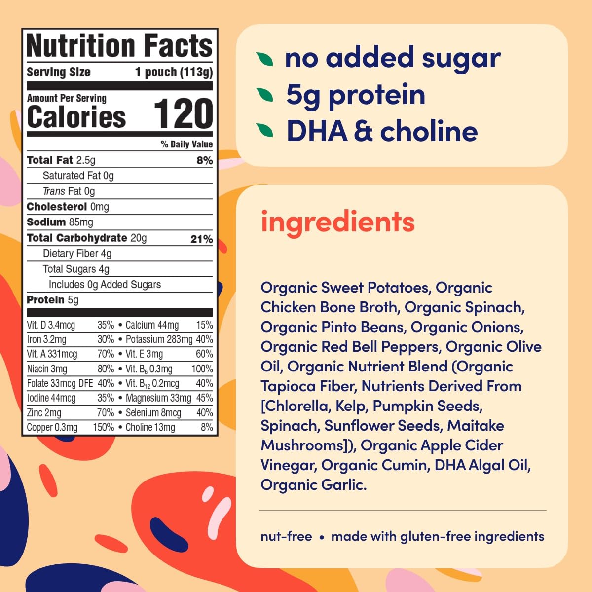 Introducing Cerebelly'S Smart Food For Babies - A Delightful Blend Of Nutrition And Taste, Specially Crafted To Nurture Your Little One'S Growing Brain. Created By A Dedicated Mom-Of-Three, Practicing Neurosurgeon, And Stanford Phd In Developmental Neurobiology, Our Nutrient-Dense Baby Pouch With Chicken Broth Brings Together The Goodness Of Hearty Sweet Potato, Cumin, And Pinto Beans, Echoing The Warm Umami Flavors Of A Comforting Roast Chicken Dinner. It'S Designed To Delight Your Child'S Taste Buds And Support Their Cognitive Development. At Cerebelly, We Understand The Importance Of Providing Your Baby With The Best Possible Start In Life. That'S Why Our Organic Pouch Is Iron Fortified And Packed With 16 Key Brain-Supporting Nutrients, Carefully Studied And Curated By Our Founder. We Know How Vital It Is For Parents To Feel Confident About The Food They Feed Their Little Ones. That'S Why Our Toddler Pouches Have Been Awarded The Prestigious Clean Label Certification. Rigorously Tested For Harmful Levels Of Heavy Metals And Toxins, Our Baby Food Purees Promise Only The Highest Quality Nourishment For Your Precious Bundle. We Go The Extra Mile To Ensure The Safety And Purity Of Our Products. Our Commitment To Excellence Extends To Our Ingredients. Our Baby Food Pouches Are Crafted From Whole, Organic Foods, Including Sweet Potato, Pinto Beans, And Cumin, All Blended With Savory Chicken Broth. We Take Pride In Offering A Veggie-First Approach With No Added Sugar, Providing Your Baby With The Brain And Body Nourishment They Need From The Very Beginning. Our Pouches Are Perfect For Every Stage Of Development. Join The Movement For Better Baby Nutrition With Cerebelly - The First Choice For Moms Who Prioritize Their Child'S Brain Health. Our Baby Pouch Purees Combine Science-Backed Nutrition With Delicious Flavors, Setting A New Standard In Organic Baby Food. Say Goodbye To Ordinary Applesauce Squeeze Pouches And Embrace The Extraordinary Taste Of Cerebelly.