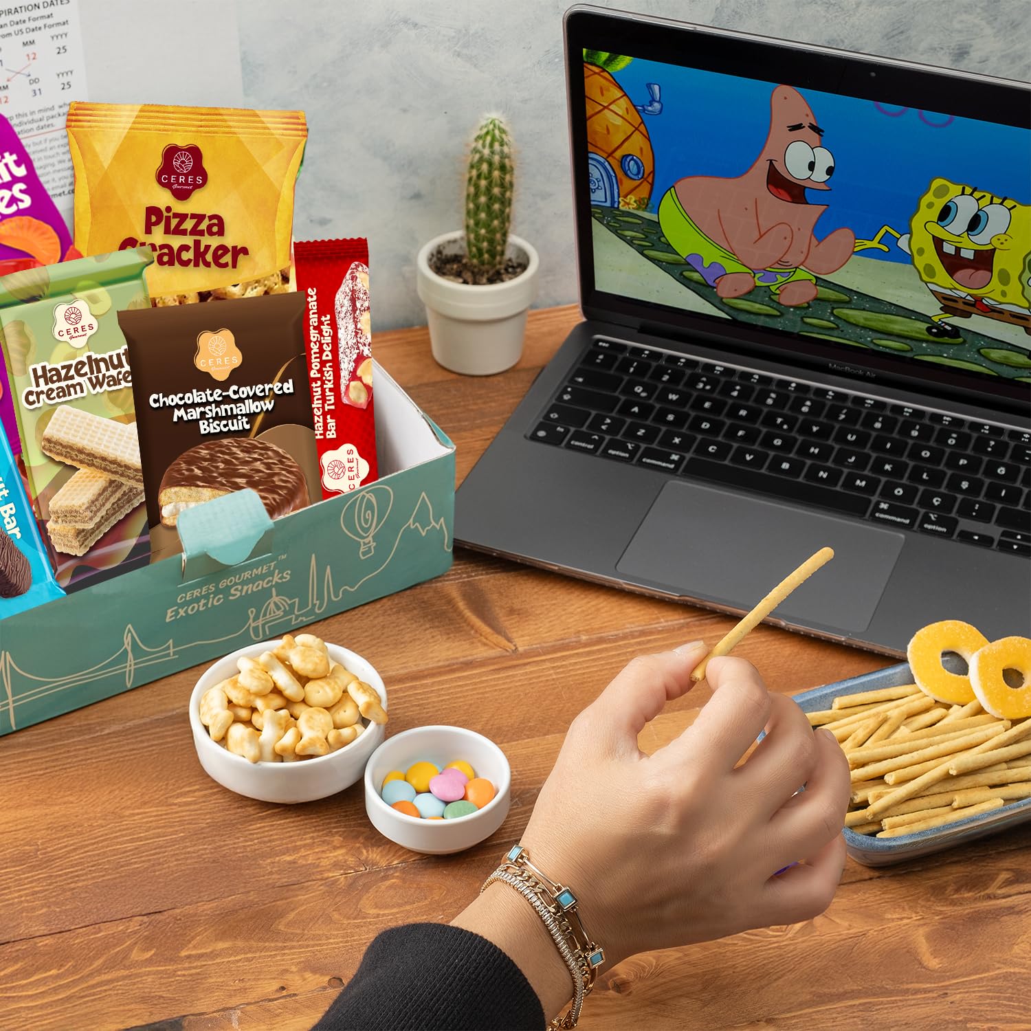 - Q: What types of snacks are included in the International Exotic Snack Box? A: The International Exotic Snack Box includes a diverse selection of snacks such as crackers, cookies, candies, bars, biscuits, and wafers, featuring both sweet and savory options from Turkey.