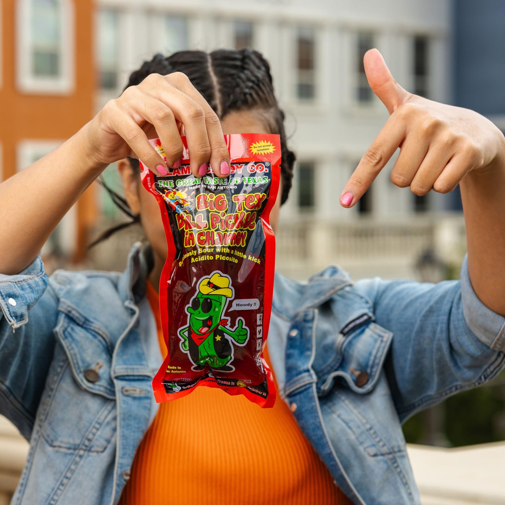 - Q: What is included in the Chamoy Pickle Kit? A: The Chamoy Pickle Kit includes one Famous Alamo Candy Big Tex Dill Pickle in chamoy, Skwinkles, Sabrositas belts, Lucas Gusano, Lucas Polvos (watermelon sandia), Mini Tajin, Takis, and an As Seen on Tik Tok magnet by Patroclus.