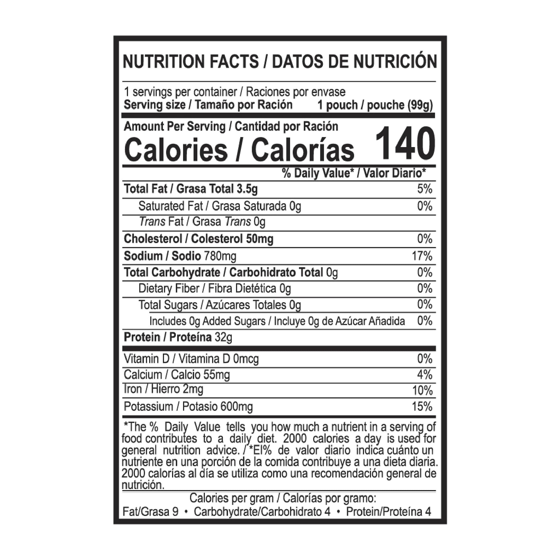 Q: What is the pack size of Chata Machaca de Res?A: Chata Machaca de Res is available in a convenient 3.5 ounce pack, making it easy to manage portion sizes for meals or snacks.