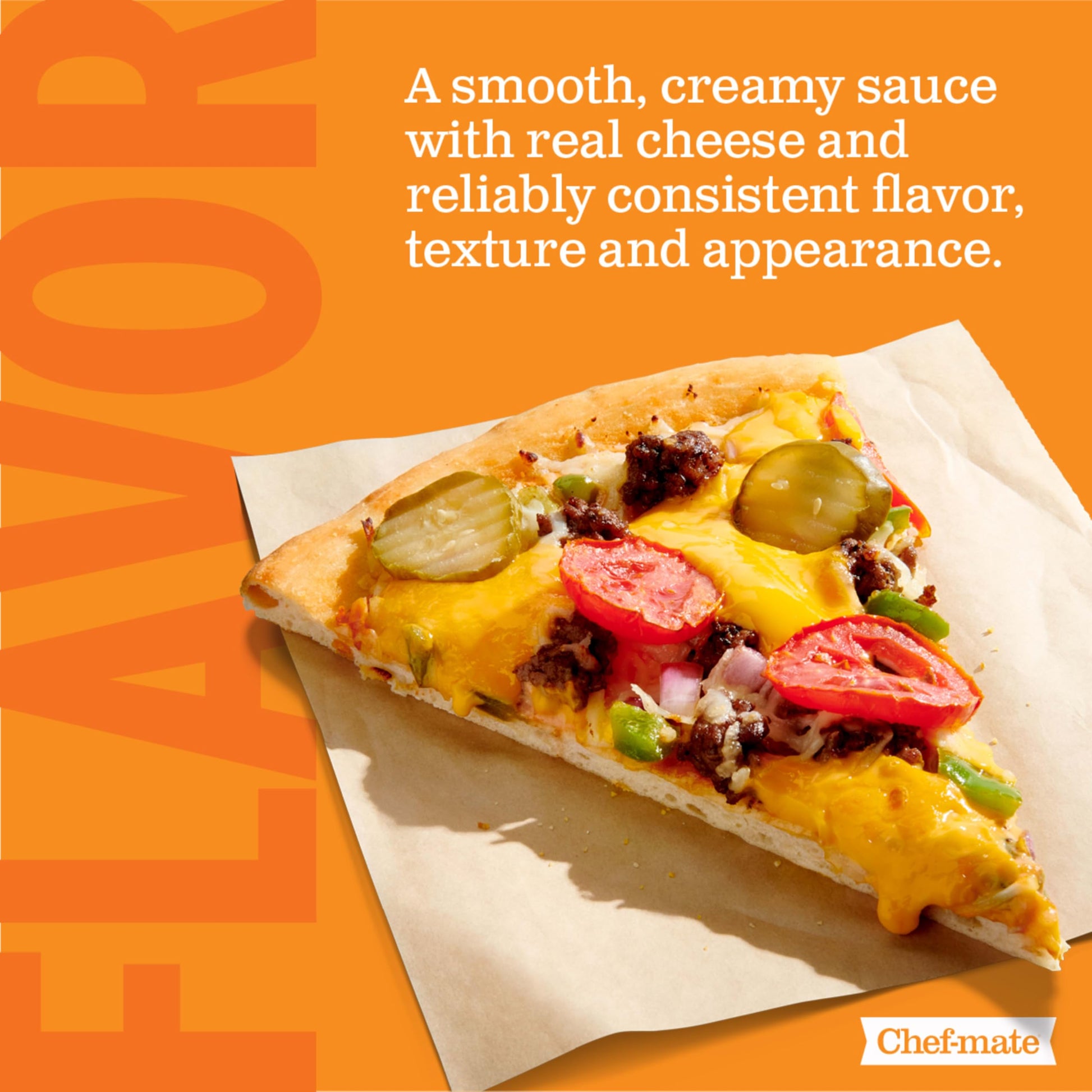 Food For Thought: Made with real cheddar cheese with no artificial flavors. A great way to make vegetables and other side dishes even more delicious. Original quality for over 50 years, Basic Cheddar Cheese Sauce, 0 Grams Trans Fat per serving. True Food. True to Its Roots. True to You. Serve Chef-mate Basic Cheddar Cheese Sauce as a side for flavored steak fries. Inspiration: Serve Chef-mate Basic Cheddar Cheese Sauce on Philly cheese steakbut do it Southwest style: with spicy jalapeos, onions, fajita seasoning, and a side of tortillas and salsa. Chef-mate. Quality for over 50 years. True food. Not fussy. Not trendy. Good-eating food with honest flavor and genuine value, true to who you are and what your customers want. Quality that recognizes your need for tastier, easier, faster, better. Authentic, reliable Chef-mate.