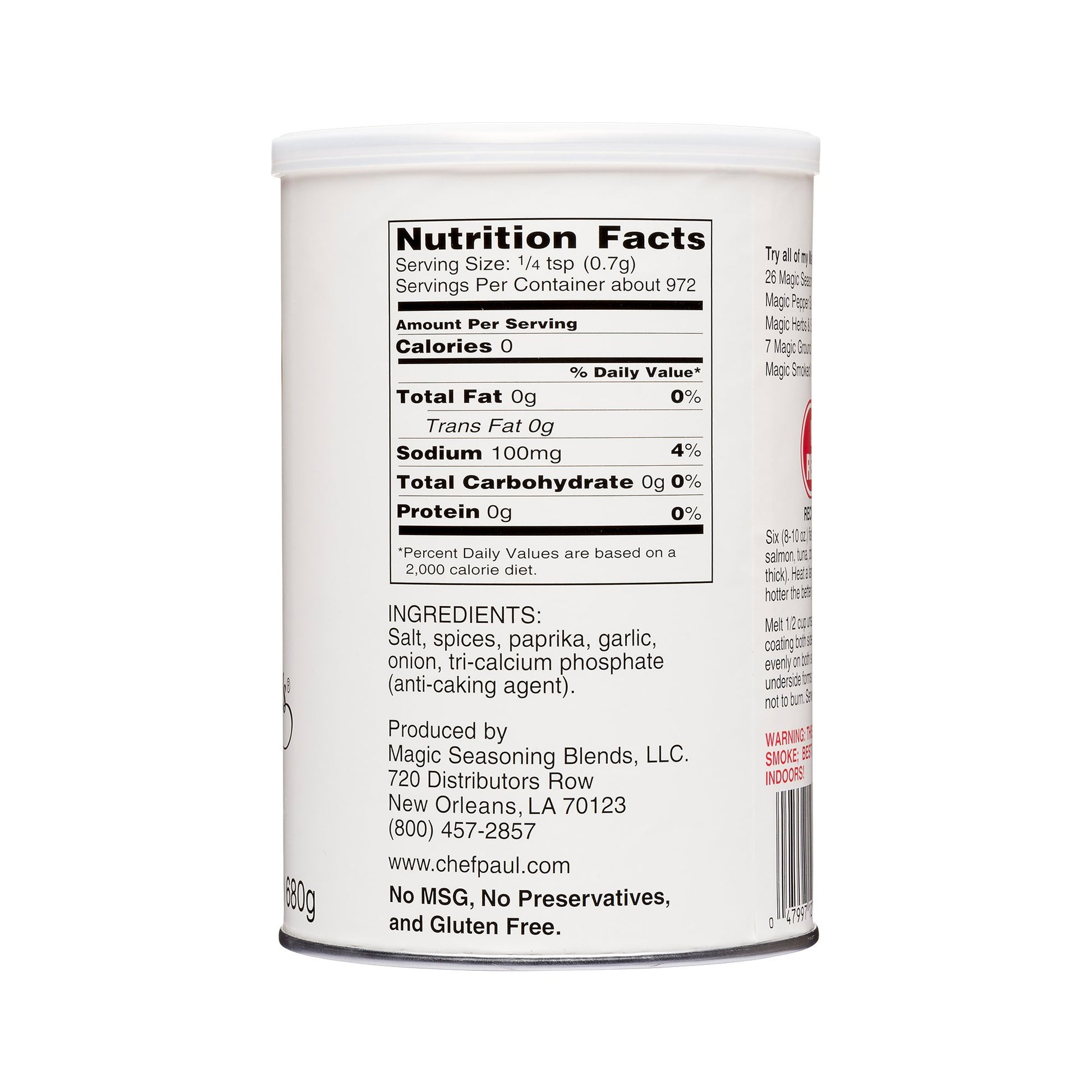 One taste of a dish prepared with this blend, and you'll understand how all the ''Magic'' got started! Chef Paul's now world-famous Blackened Redfish Magic captures the essence of Southern Louisiana cuisine and works wonders on any kind of fish, no matter how it's prepared! For a taste you won't forget, try sprinkling it on shrimp, crab, oysters, lobster, catfish, etc. Fantastic in your gumbos, soups, sauces, and dressings. (To use, simply substitute for salt, pepper, and other herbs & spices in your recipe.)