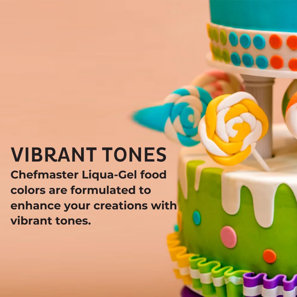 - Q: What makes Chefmaster Neon Liqua-Gel food coloring fade resistant? A: Chefmaster Neon Liqua-Gel food coloring is formulated to provide long-lasting, vivid colors that maintain their brightness even after baking or exposure to light. This fade-resistant quality ensures that your creations look stunning and vibrant for longer periods.