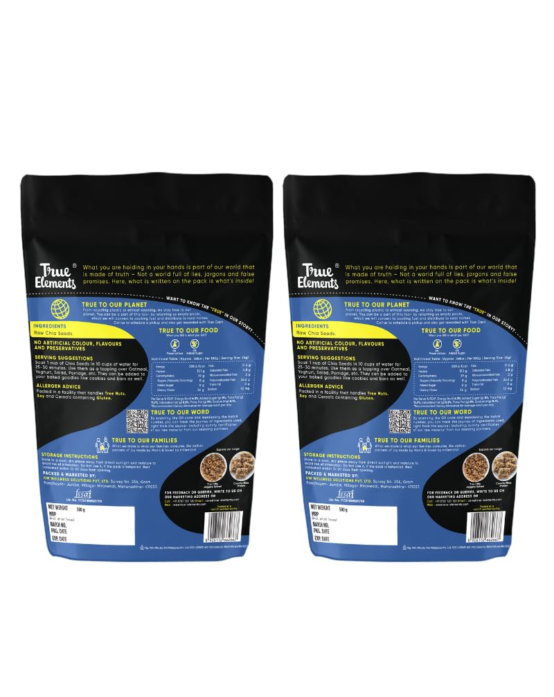 Chia Seeds 1kg by True Elements - Sabja Seeds | Healthy Seeds for Weight Loss | Seeds for Eating | Diet Snacks | 100% Clean and Natural | 500g Pack of 2