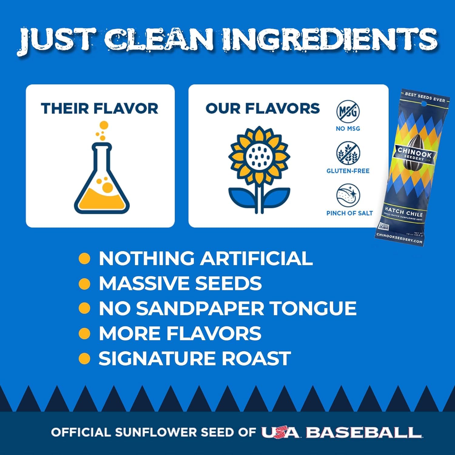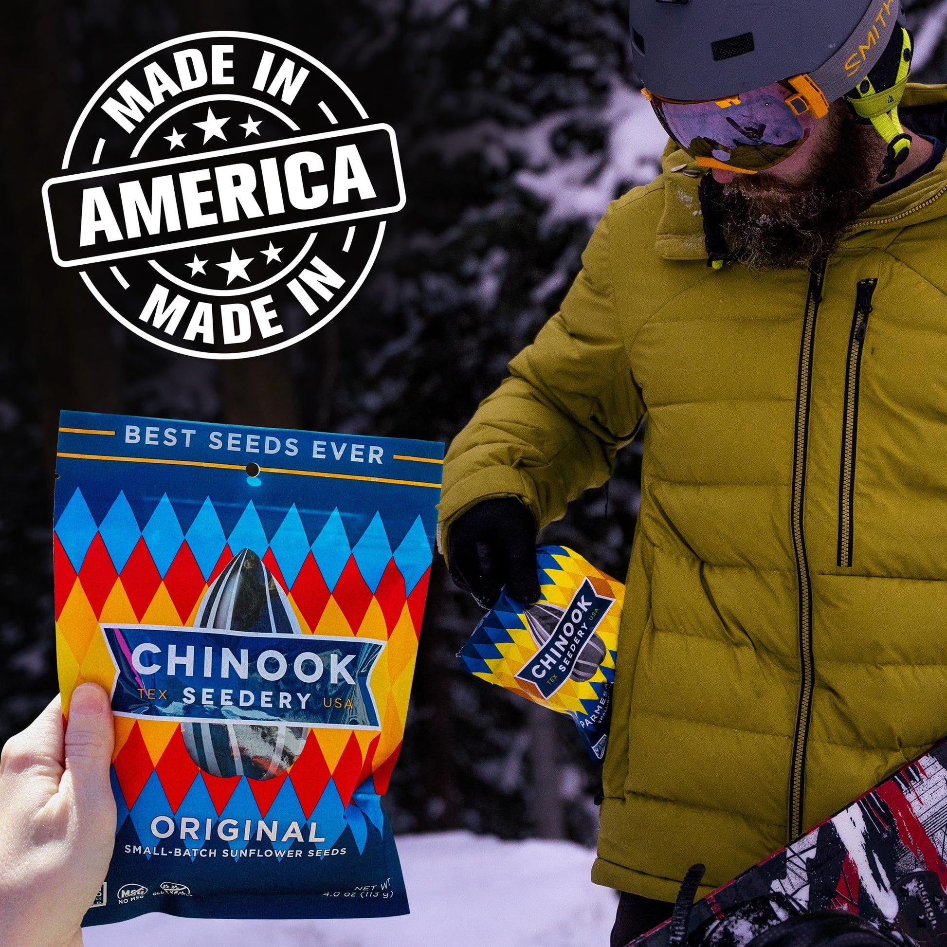 Q: What activities are Chinook Seedery sunflower seeds great for?A: Chinook Seedery sunflower seeds are ideal for various activities such as baseball games, road trips, camping, fishing, and more, providing a great source of energy and enjoyment.
