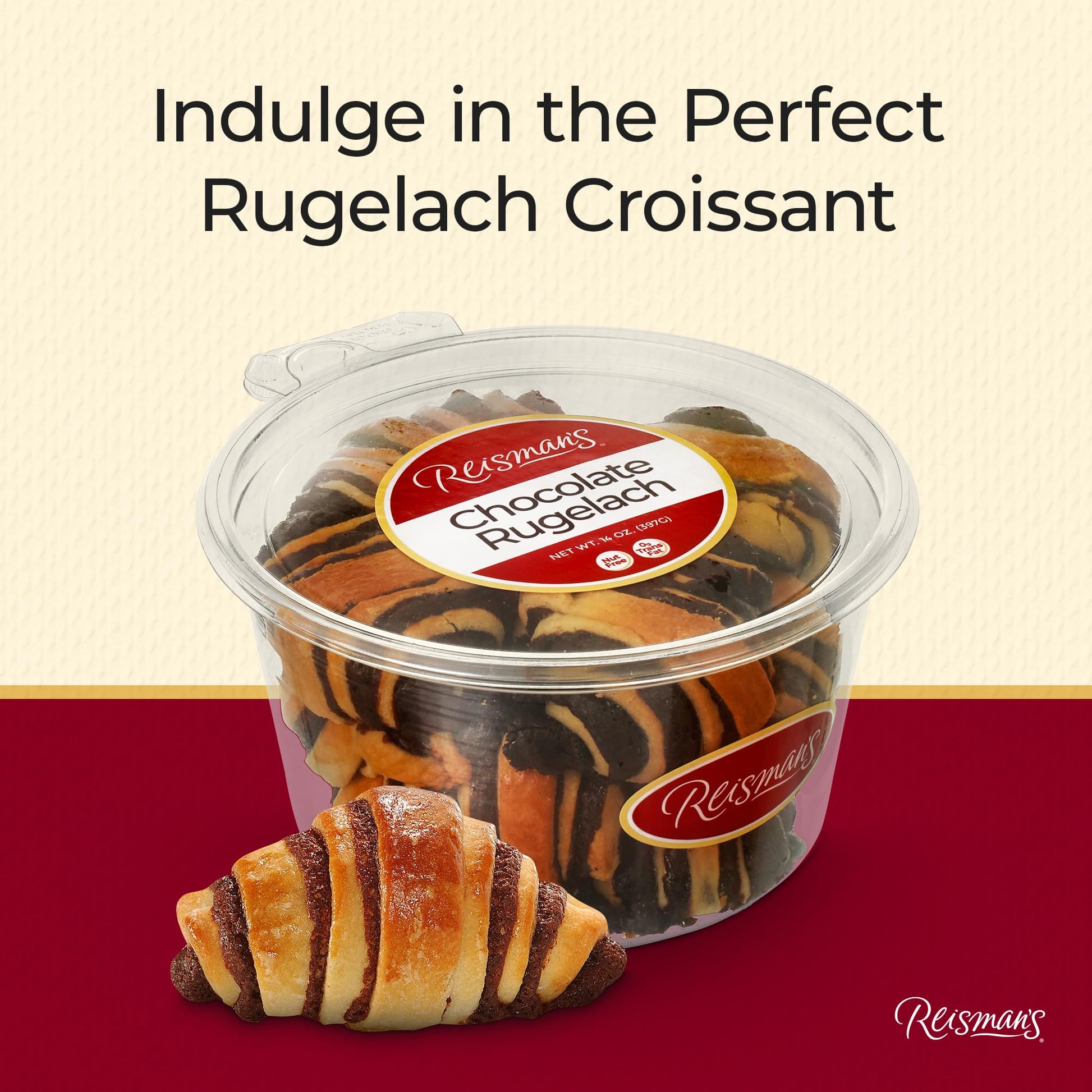 Indulge In The Delectable Taste Of Reisman'S Bakerys Chocolate Rugelach, Ideal For Breakfast, Snack Time, Or Dessert. These Delightful Pastries Bring A Touch Of Sweetness To Any Moment Of Your Day, Ensuring Satisfaction With Every Bite. Each Croissant Is Crafted With Premium Flours And 100% Real Cinnamon, Providing A Fresh And Authentic Bakery Taste. Our Third-Generation Bakers Pour Their Expertise And Passion Into Every Batch, Creating A Homemade Delicacy You Can Trust. Made Without Dairy Or Nuts, Our Rugelach Pastries Cater To Those With Dietary Restrictions Or Allergies, Offering A Delicious And Worry-Free Treat. You Can Savor The Rich Flavor And Doughy Texture Without Any Concerns, Making Them A Safe And Tasty Option For Everyone. Experience A Variety Of Flavors Including Cinnamon, Chocolate And Vanilla, With Each 14 Oz Pack Delivering Moist Spirals Of Dough And Semi-Sweet Filling Beloved By All Ages. Certified By Ou Kosher, Our Rugelach Croissants Meet The Highest Standards Of Quality And Purity. You Can Trust In Our Commitment To Delivering Only The Best Kosher-Certified Baked Goods, Ensuring That Every Bite Is As Delightful As The Last. Whether Youre Enjoying Them Yourself Or Gifting Them To A Loved One, Reisman'S Bakerys Chocolate Rugelach Croissants Are Sure To Create Lasting Memories And Bring Joy To Any Occasion.