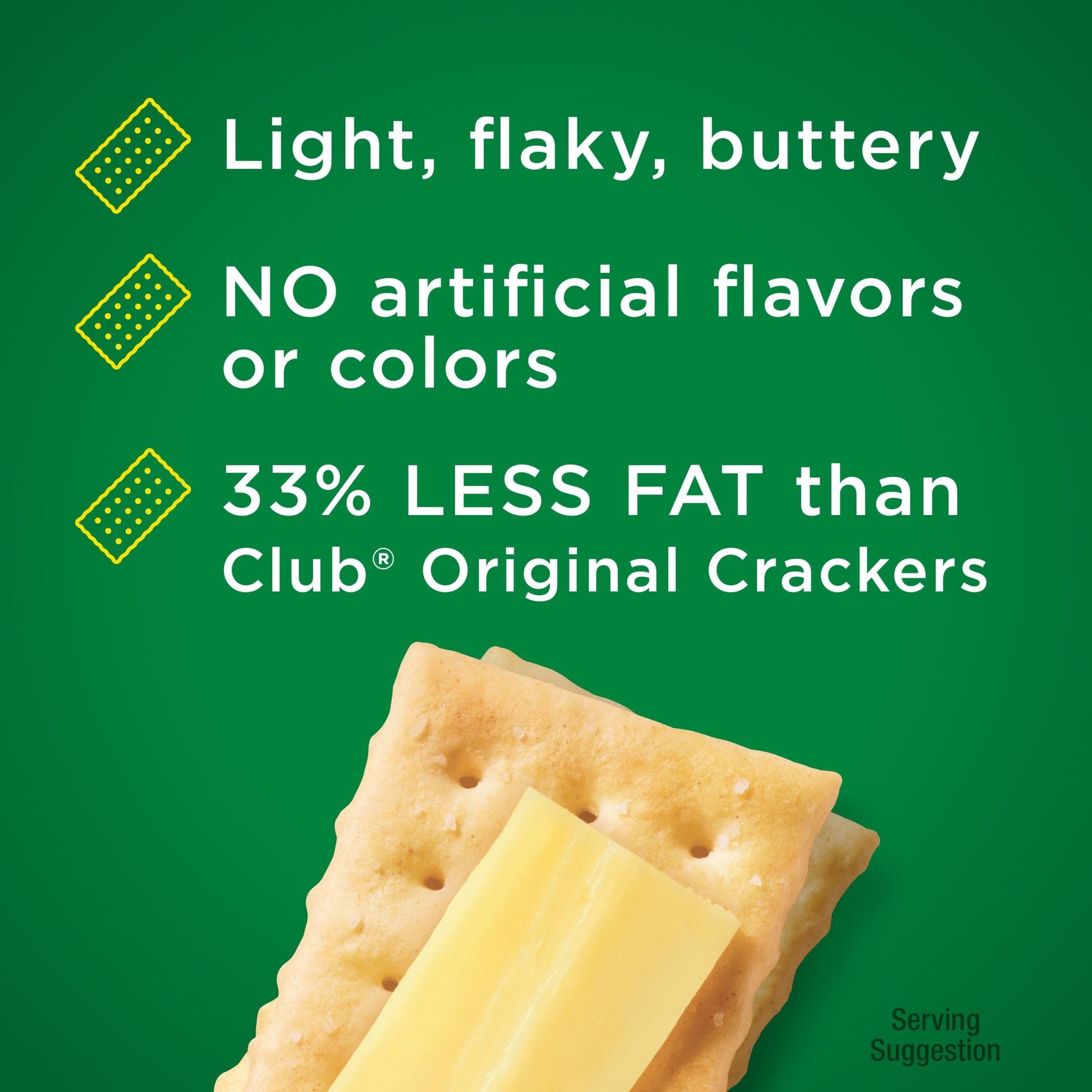 Savor The Light, Flaky, Buttery Taste Of Club Reduced Fat Crackers Wherever You Go. Perfect For Packing In Work Bags And Adding To Lunch Snacks, Enjoy These Crackers On Their Own Or With Cheese, Dips, Spreads Or Toppings. They'Re An Easy Win With 33% Less Fat Than Original Club Crackers*, Contain No Cholesterol (0G Monounsaturated Fat, 1G Polyunsaturated Fat) And Made With No Artificial Colors Or Flavors; Stock Irresistible Club Reduced Fat Crackers In Your Pantry As A Fun, On-The-Go Snack For Everyone. Make Them A Part Of Preparing Quick, Casual Meals. Grab A Stack For Car Rides, School Snacks, Events, Sports Games, And Just About Anywhere Life Takes You. Your Schedule Might Not Always Be Simple, But With The Light Crunch And Buttery Deliciousness Of Club Reduced Fat Crackers, Snacking Is Made Easy. *Compare Reduced Fat Club Crackers With 2G Fat Per Serving To Original Club Crackers With 3G Fat Per Serving