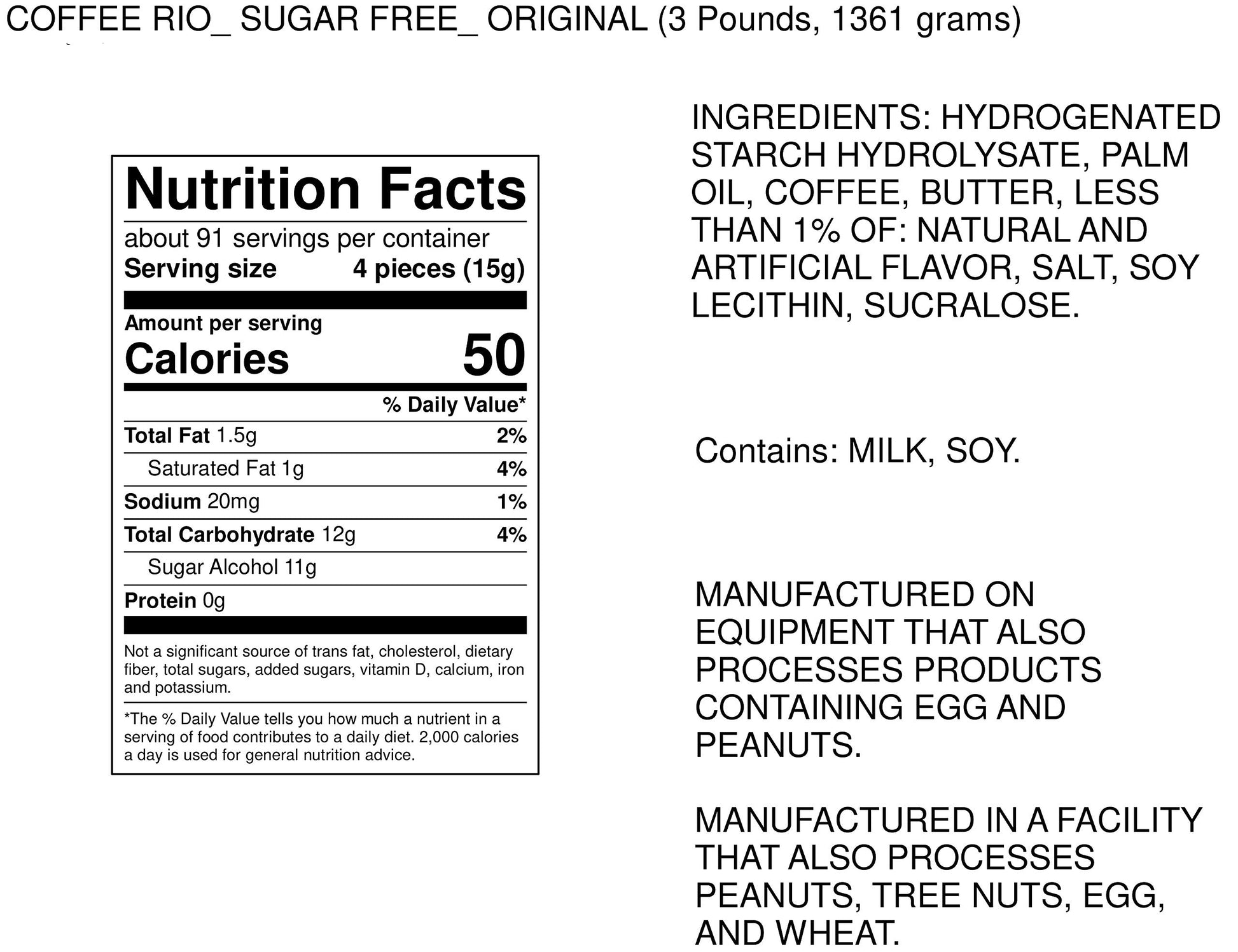 Don't miss out on the chance to enjoy this unique candy experience. Order your 3-pound bag of Coffee Rio Coffee Candy today and treat yourself to the delightful combination of coffee and candy!