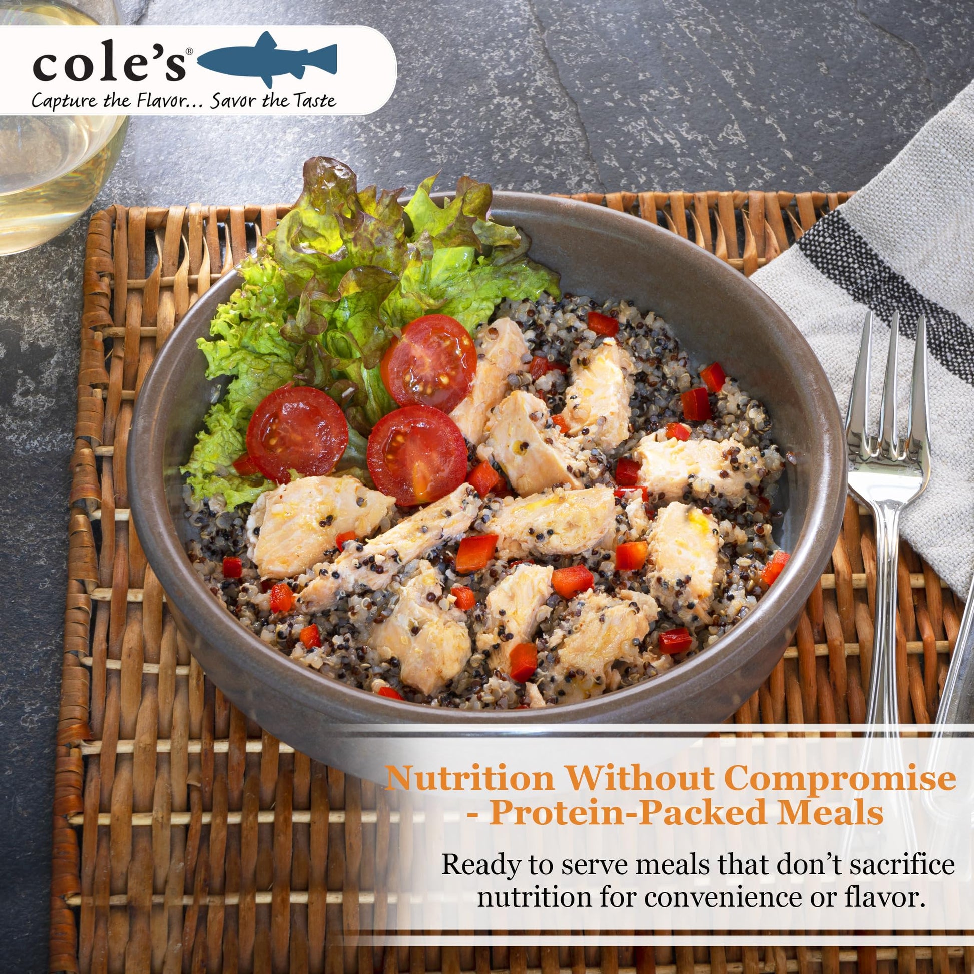 - Q: Is the packaging recyclable? A: Yes, the packaging for Cole's Patagonian Smoked Salmon Fillet with Quinoa is recyclable, which aligns with the brand's commitment to sustainability.