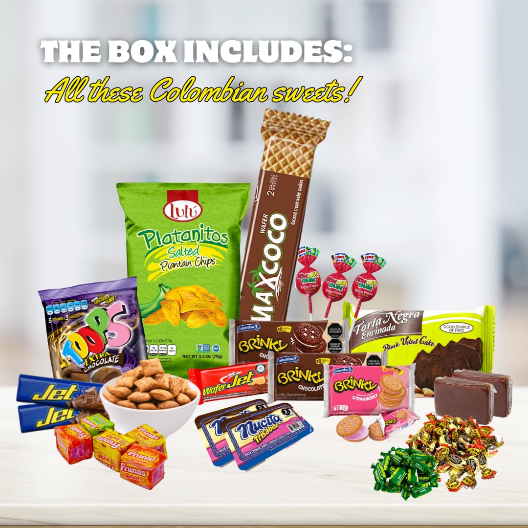 Colombian Assortment Candy Food Sweet Snacks Gift Crate Box Assorted Cookies, Chips & Candies Mix Variety Pack, Popular Sweets, Fruit Snacks, Gift Snack Box For Lunches, Holiday Gifts. Birthday Collage Latin Sabor. Latin Sabor Snack Variety Packs Include Different Yet Equally Delicious Snacks That Satisfy Your Hunger. You Can Enjoy A Delicious Variety Of Some Of The Snacks Packed In High Quality Carton With Convenient Dimensions. We Know You Send Our Gift Boxes To Your Loved Ones (Or Yourself!), That'S Why The Quality Of Our Products Is The Highest Priority On Our Part. For The Entire Family! Latin Flavor Variety Packs Make Everyone Happy. From Holidays To Movie Nights, It'S Sure To Please Guests Of Any Age. With A Wide Variety Of Cookies From Your Favorite Brands. And The Best Part We Know You Want Different Snacks For Different Times. That'S Why We'Ve Done All The Hard Work For You And Compiled A Great Variety Of Snacks For You.