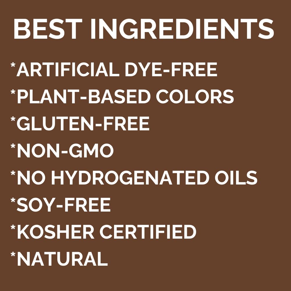 Q: What are Color Kitchen Dark Cocoa Sprinkles made from?A: Color Kitchen Dark Cocoa Sprinkles are crafted from natural ingredients, featuring plant-based colors that are artificial dye-free, gluten-free, non-GMO, and soy-free. They provide a rich, dark chocolatey hue for your baking needs.