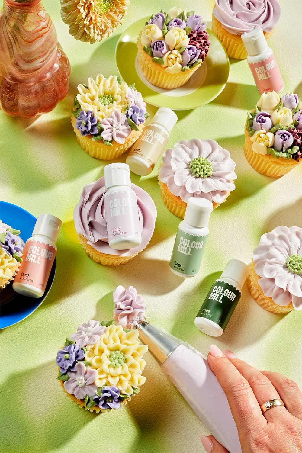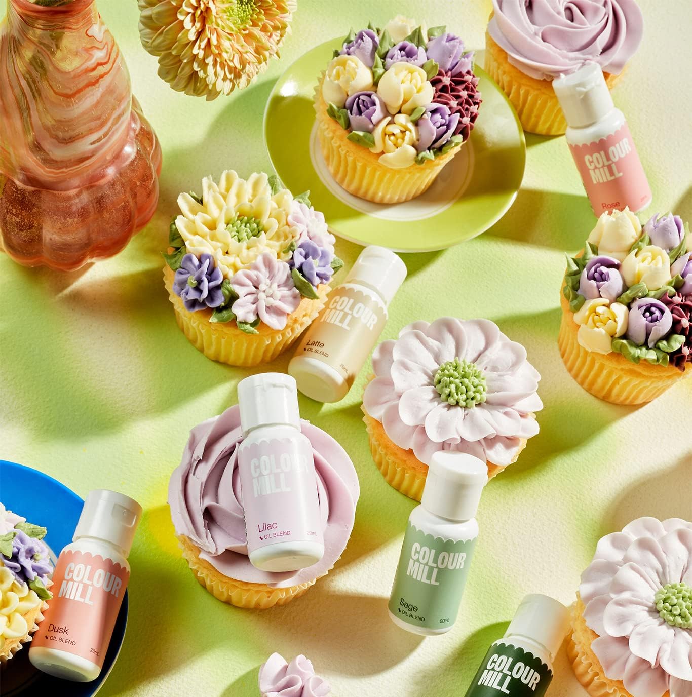 Colour Mill Botanical Oil-Based Food Coloring, 20 Milliliters Each Of 6 Colors: Dusk, Latte, Lilac, Olive, Rose & Sage, 120.0 Gr