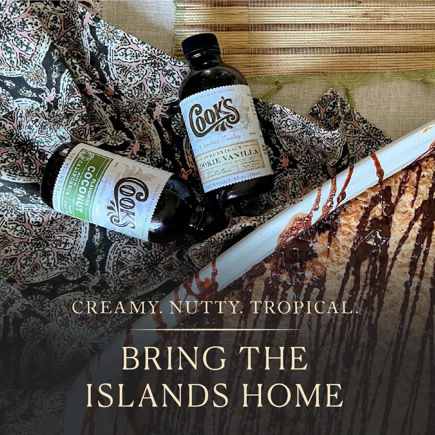 Q: What makes Cook's Coconut Flavoring unique compared to other flavorings?A: Cook's Coconut Flavoring stands out due to its handcrafted quality, sourced from premium ingredients and perfected through family tastings, ensuring a rich and authentic coconut flavor.