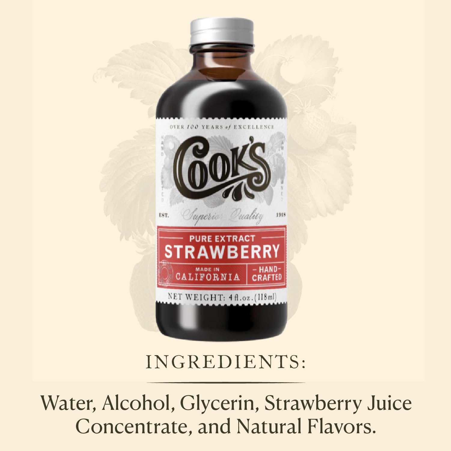 Q: What makes Cook's Strawberry Extract different from other flavorings?A: Cook's Strawberry Extract is crafted using a century-old tradition of quality and care. The extract is made from hand-selected ingredients, showcasing a unique depth of flavor that enhances your culinary creations.