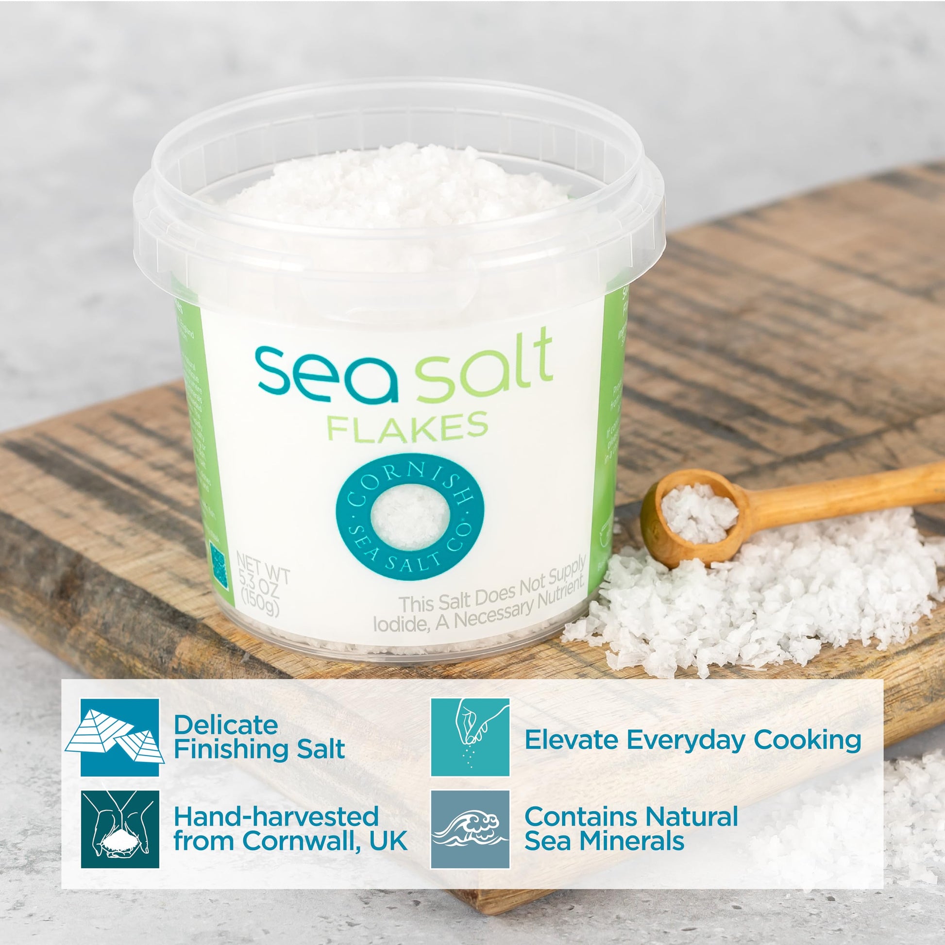 Cornish Sea Salt Mineral Flakes | Cooking & Hydration | Hand-Harvested in Celtic Waters | 5.3 oz Resealable Tub (Pack of 1)