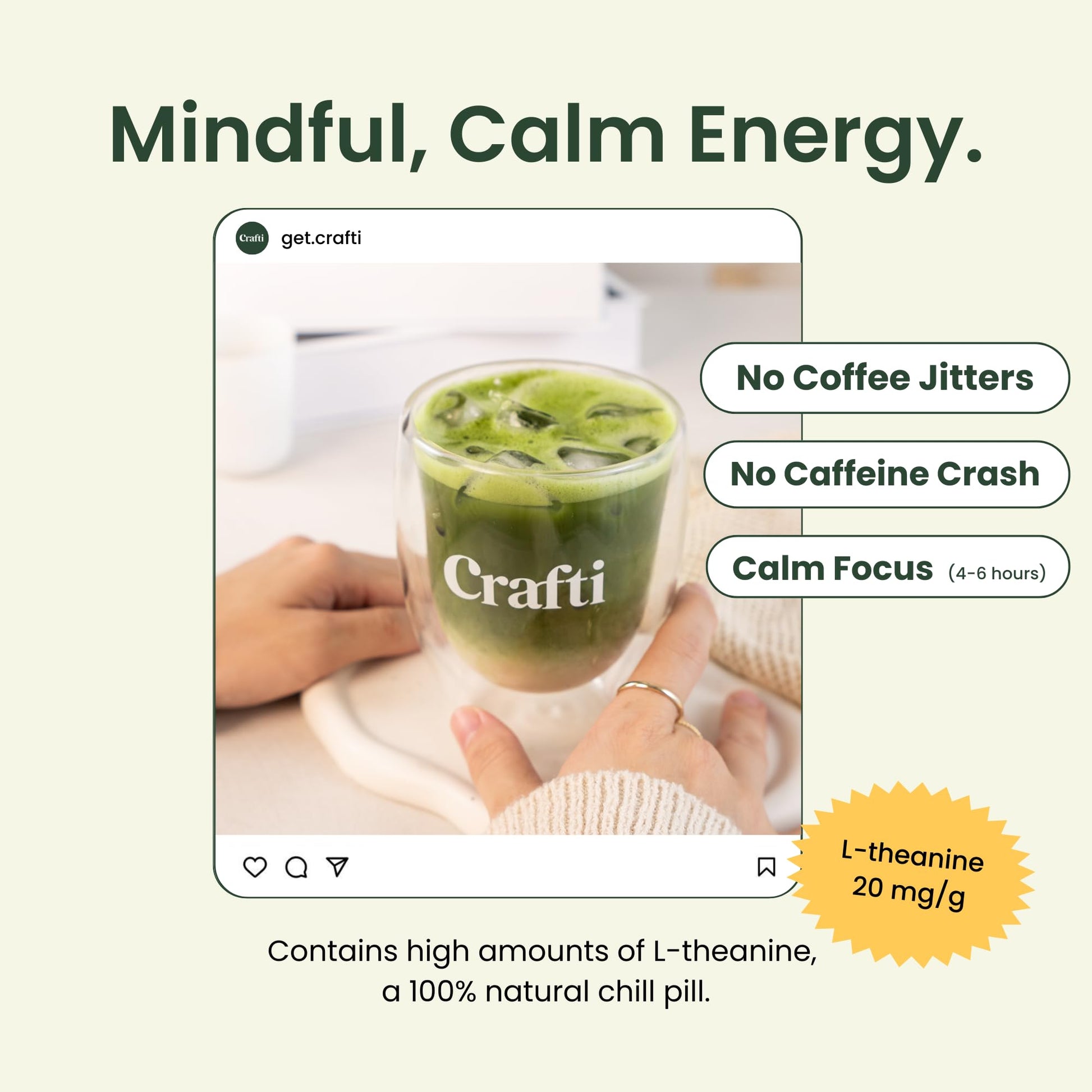 • Q: How can I prepare matcha lattes using Crafti matcha powder? A: To make a barista-quality matcha latte, whisk 1-2 teaspoons of Crafti matcha powder with a small amount of hot water until smooth. Then, heat and froth your choice of milk (dairy or plant-based) and pour it over the whisked matcha. Sweeten to taste if desired, but many enjoy it sugar-free.
