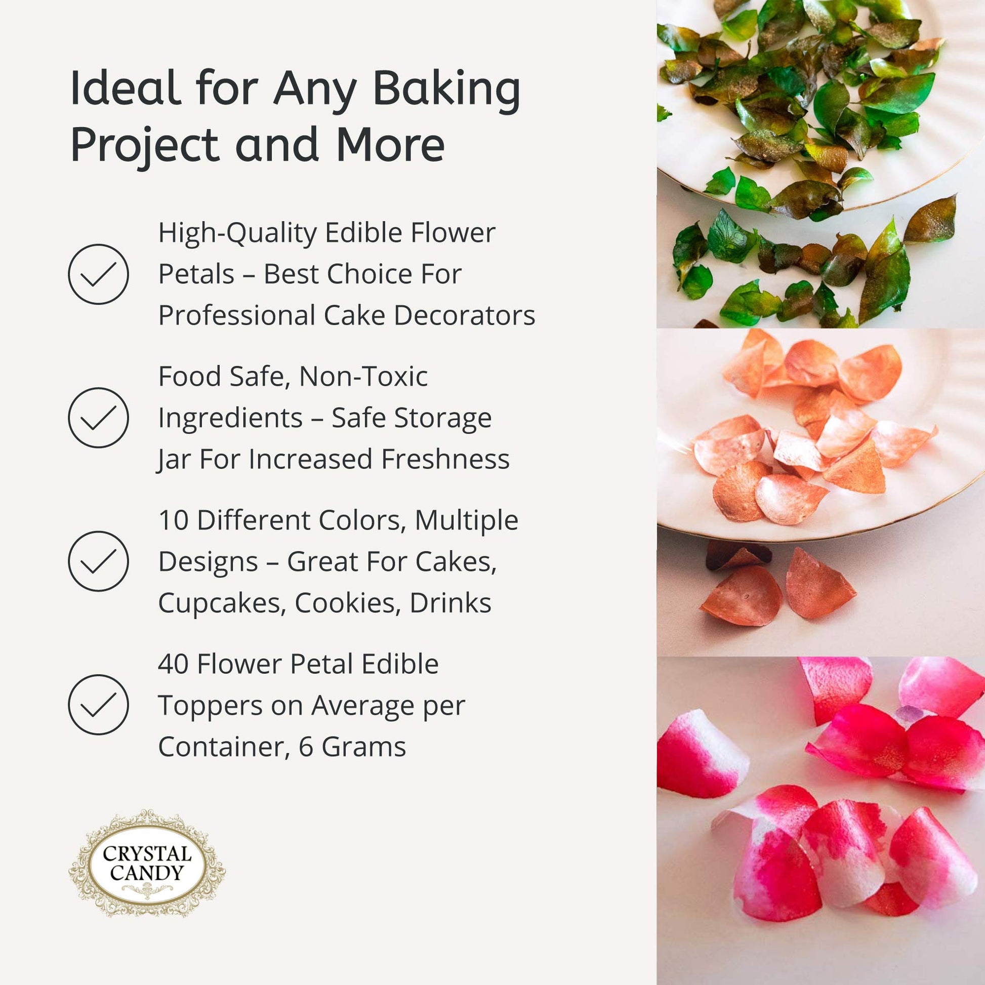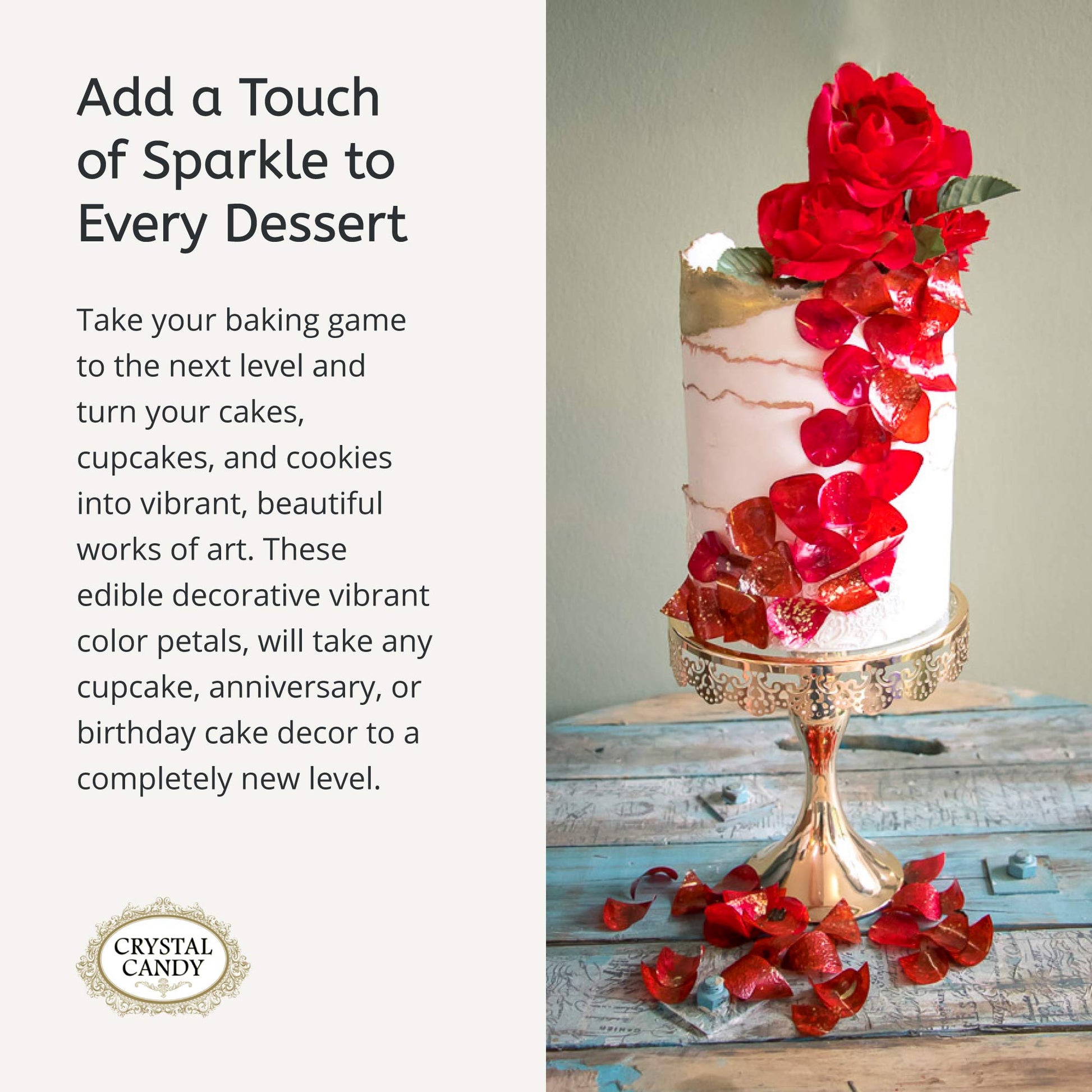 Enhance your baking projects with the elegant and vibrant Edible Flower Petals by Crystal Candy. Perfect for decorating cakes, cupcakes, and cookies, these edible petals will bring a touch of artistry to your sweet creations.