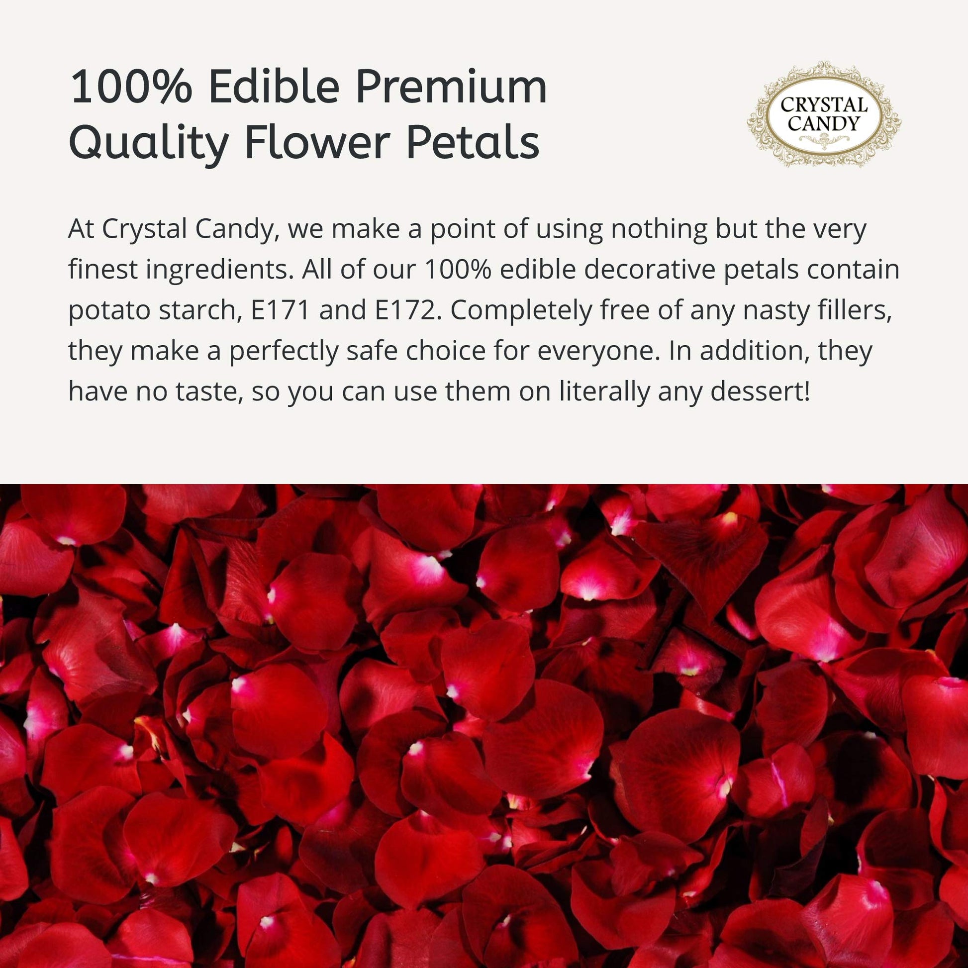 - Q: What are Crystal Candy Edible Leaves made of? A: Crystal Candy Edible Leaves are made of potato starch, E171, and E172. They are 100% edible and free from any harmful fillers, making them a safe choice for decorating desserts.