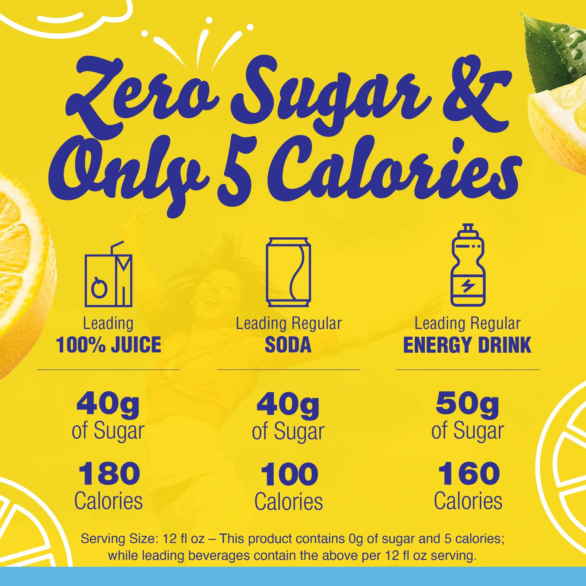 - Q: Is Crystal Light Sugar-Free Lemonade suitable for weight management? A: Yes, Crystal Light Sugar-Free Lemonade is an excellent choice for those managing their weight, as it contains zero sugar and only 5 calories per serving, making it 90% fewer calories than leading beverages.