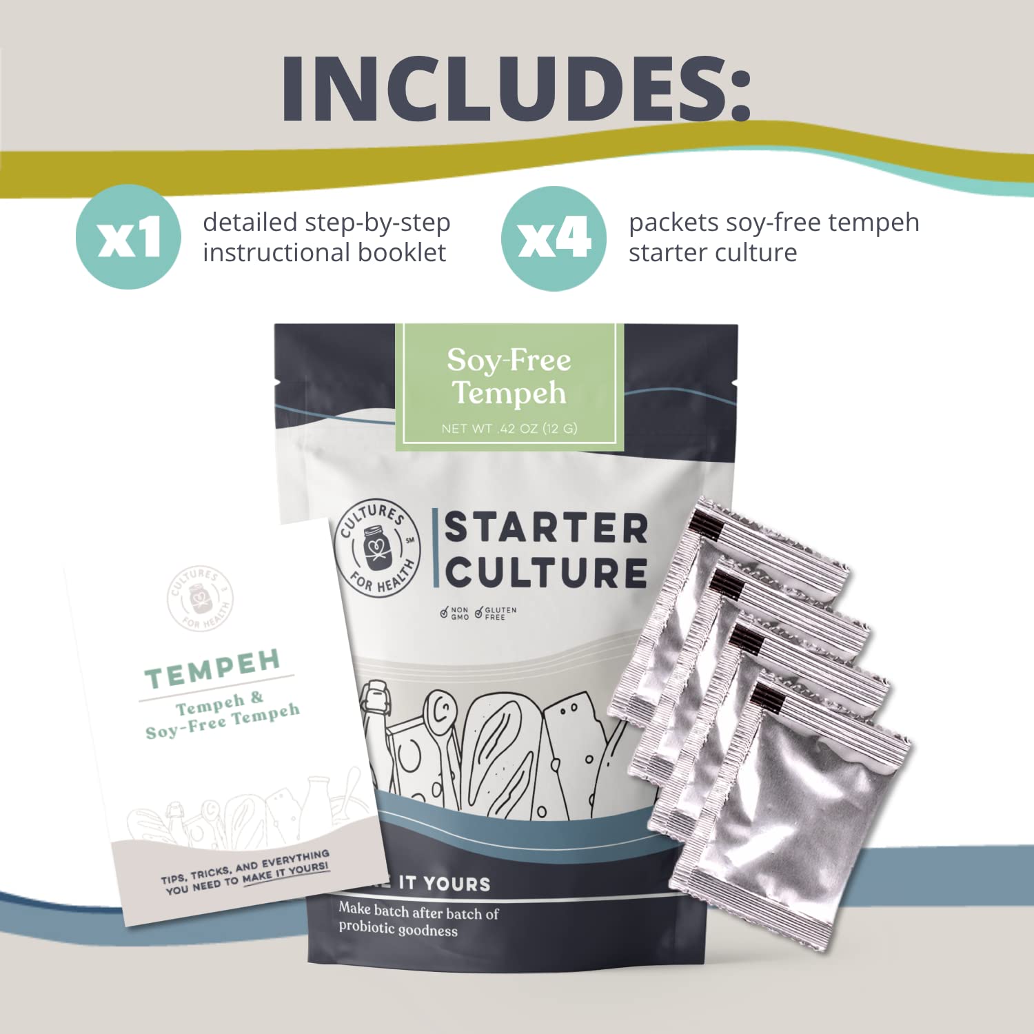 - Q: What is the Cultures For Health Soy-Free Tempeh Starter Culture used for? A: The Cultures For Health Soy-Free Tempeh Starter Culture is used to create homemade tempeh, a nutritious vegetarian meat substitute. It allows you to ferment beans or lentils, resulting in a high-protein food that can be used in various dishes.