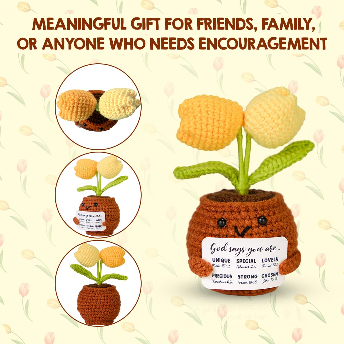- Q: What makes the Cute Positive Crochet Tulips a great gift for women? A: The Cute Positive Crochet Tulips are designed to inspire and uplift, making them perfect gifts for women on special occasions like birthdays or Mother's Day. Their whimsical design and positive message add a meaningful touch, making them ideal for friends, coworkers, and family members.