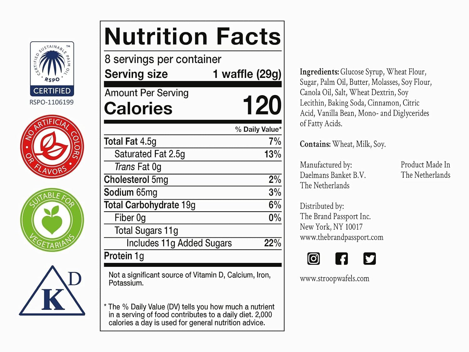 Q: Are Daelmans Stroopwafels suitable for those with dietary restrictions?A: Yes, Daelmans Stroopwafels are certified kosher dairy and made in a facility that does not process peanuts, nuts, or sesame, making them a safe choice for those with these allergies.