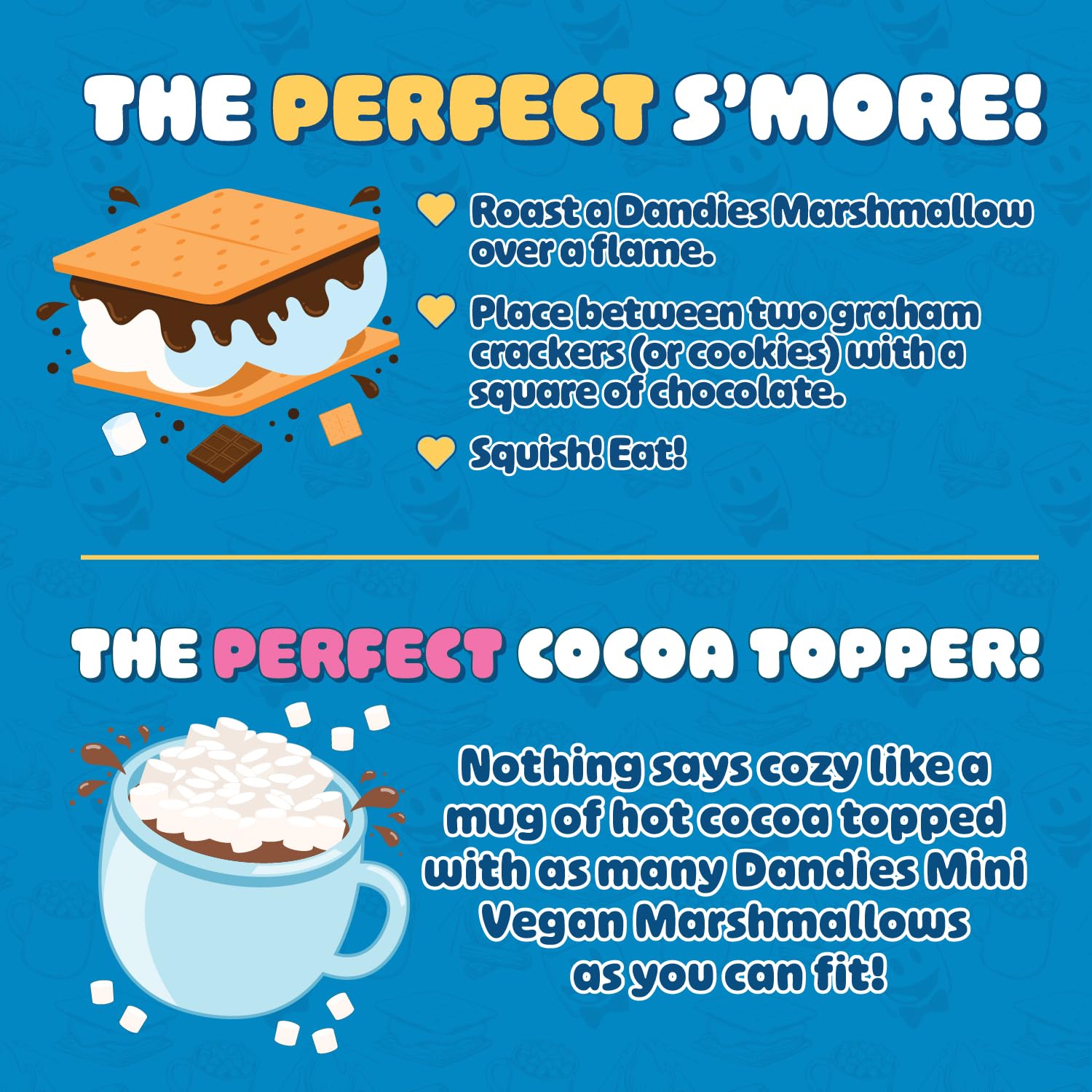 Q: Are Dandies Mini Vegan Marshmallows suitable for roasting?A: Yes, Dandies Mini Vegan Marshmallows are perfect for roasting. Their soft texture allows them to melt beautifully over an open flame, making them ideal for s'mores and other roasted treats.