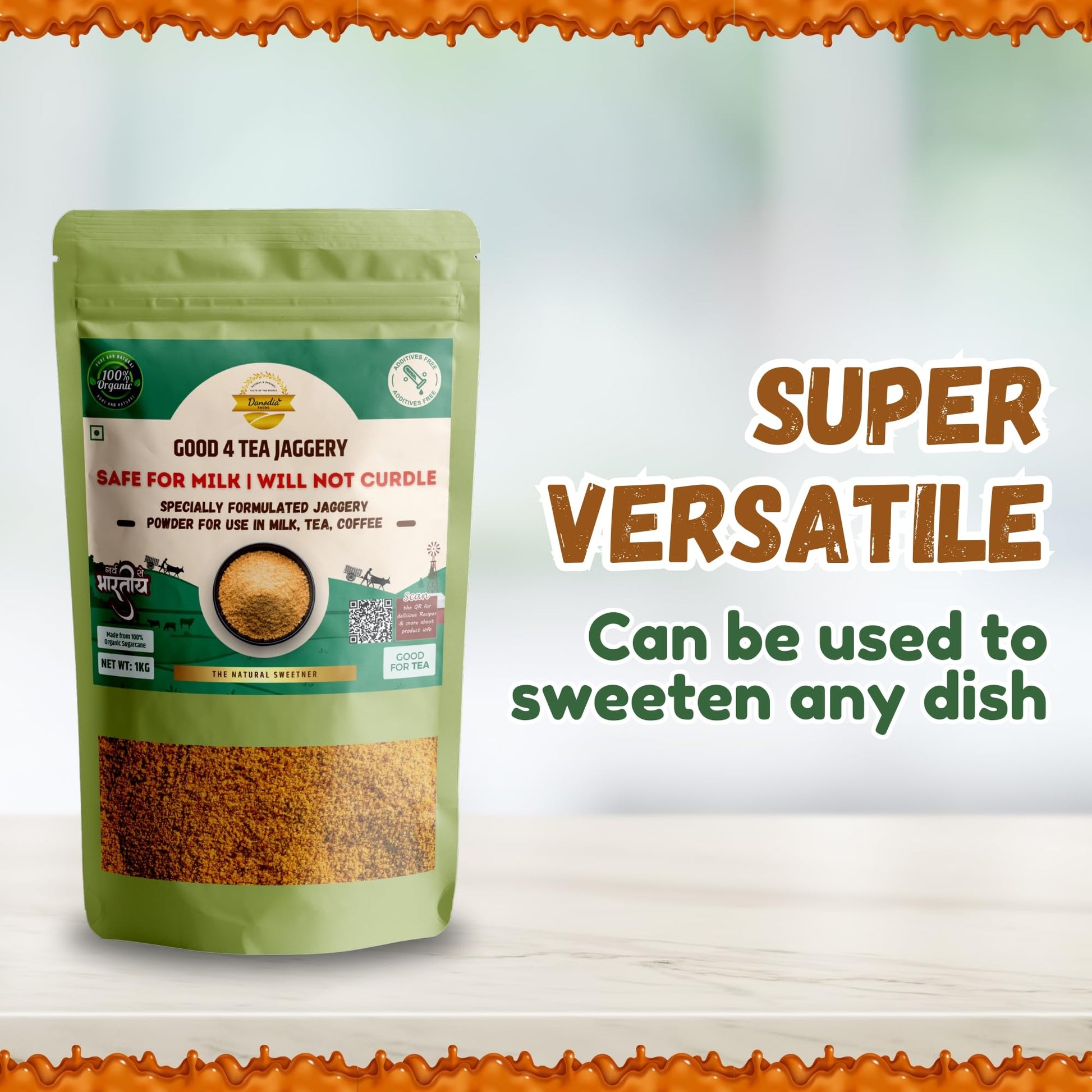 Danodia Foods 2 lbs Organic Jaggery Powder Specially Formulated | For Tea, Milk and Coffee | Brown Sugar Substitute, Non-GMO, Vegan | Resealable Zipper Pouch (Good 4 Tea)