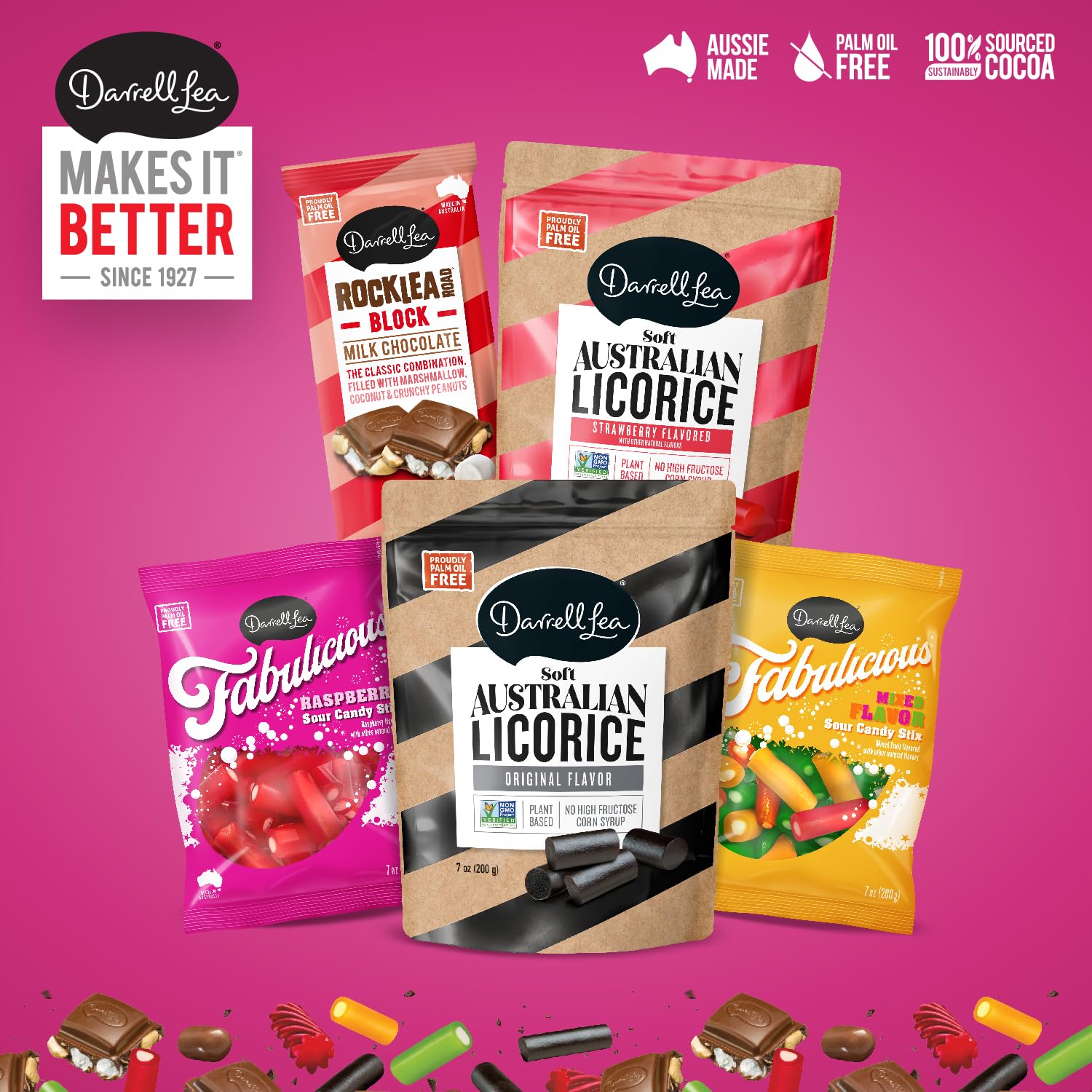 Embrace The Sweet Life With Our New Fabulicious Sour Candy Stix. These Irresistible Treats Are A Delightful Combination Of Softness, Tanginess, And A Burst Of Raspberry Flavor. Each Tube Is Filled With A Sour Sherbet Center That Will Make Your Taste Buds Dance With Excitement. Get Ready For A Mouthwatering Experience That Will Leave You Craving More. At Darrell Lea, We Are Proud To Be Palm Oil-Free. The Demand For Palm Oil Has Led To The Rapid Clearance Of Rainforests In Southeast Asia, Causing Significant Environmental Damage. We Are Committed To Making Our Products Better, Which Is Why We Have Replaced 100% Of Palm Oil With Sunflower Oil Across Our Entire Range Of Darrell Lea Products. With Every Bite Of Our Fabulicious Sour Candy Stix, You Can Enjoy A Guilt-Free Treat That Not Only Tantalizes Your Taste Buds But Also Helps Protect Our Precious Ecosystems. In Addition To Our Tantalizing Raspberry Flavor, We Invite You To Try Our Other Delectable Soft And Sour Candy Stix Flavors: Sour Apple And Mixed Flavor. These Flavors Offer A Variety Of Taste Sensations That Are Perfect For Sharing At Parties, Picnics, Or Simply Enjoying As Your Own Personal Snack. Let The Joy Of These Tangy Treats Enhance Your Gatherings And Bring Smiles To Everyone'S Faces. For Nearly A Century, Darrell Lea Has Been Synonymous With The Finest Chocolate, Freshest Licorice, And Most Delectable Confectionery. Our Commitment To Quality And Innovation Is Evident In Every Product We Create. Among Our Delightful Offerings, Our Soft Eating Licorice Stands Out As A True Crowd-Pleaser. Invented In A Small Factory Under The Iconic Arches Of The Sydney Harbour Bridge, It Represents Our Dedication To Crafting Exceptional Treats That Capture The Essence Of Australian Confectionery.