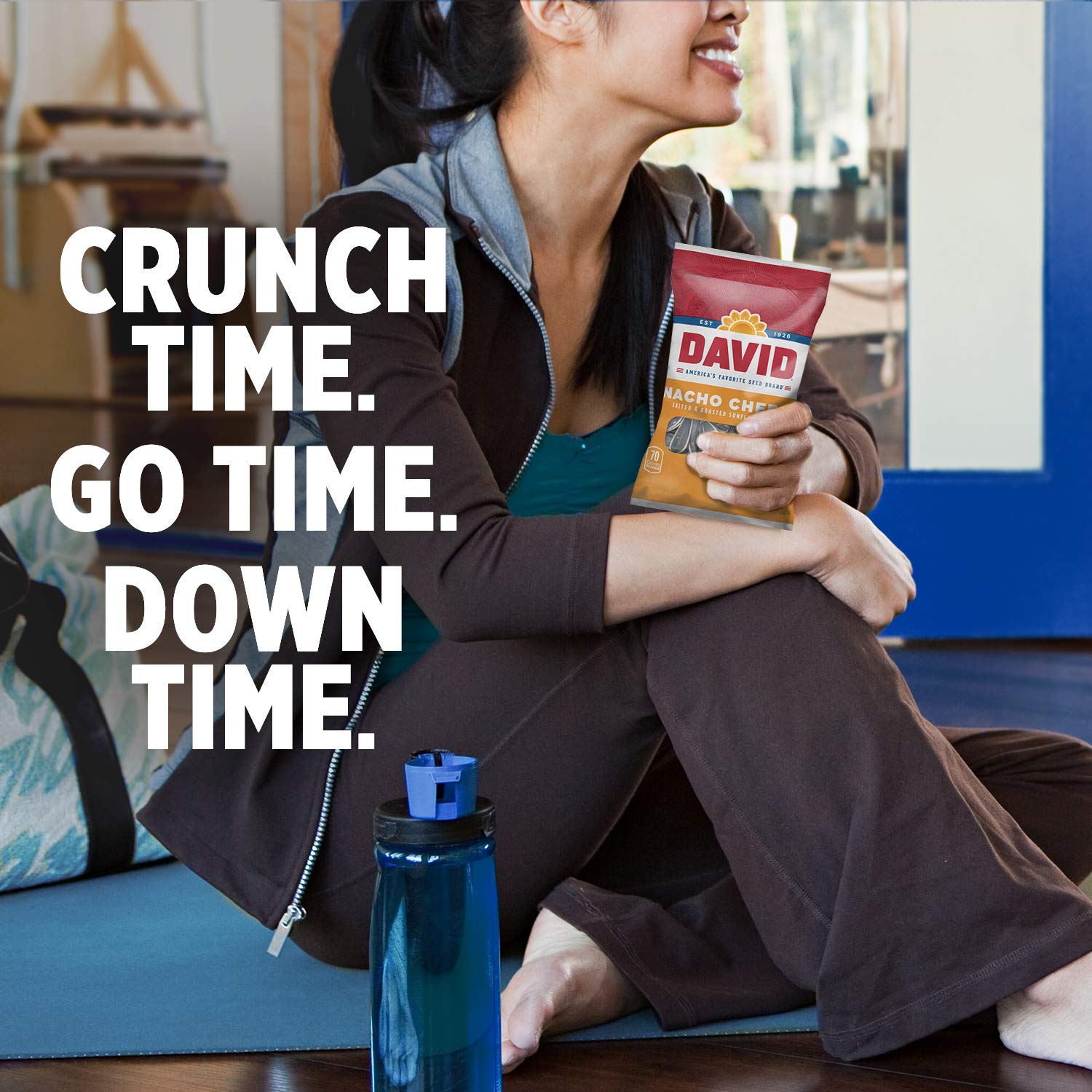 About the BrandDAVID Seeds is the number one sunflower seed brand and the largest manufacturer of sunflower seeds in the U.S. For 80 years, DAVID has roasted some of the highest-quality sunflower seeds in the business.Who is DAVID? DAVID was founded in 1926 by David Der Herbedian of Fresno, California. David first roasted sunflower seeds in his grocery store and packaged them in individual servings for a nickel. Eventually, Davids two sons joined him in marketing the seeds to other retailers, and DAVID Seeds was born.About ConAgraDAVID Seeds is a member of the ConAgra Foods family, one of the largest packaged foods companies in North America with major presence in retail outlets, foodservice and restaurants, and in ingredients. Their more than 70 brands--which include favorites such as Pam, Hunts, Healthy Choice, Butterball, Wesson, Swiss Miss, Rotel, Peter Pan, Marie Callenders, Hebrew National, Wolf Brand Chili, Rosarita, Egg Beaters, Chef Boyardee, and more--are in 96% of U.S. households, and more than 30% of ConAgra Foods brands are number one in their category.Product DescriptionHunger wont wait for crunch time. Grab a bag of DAVID Nacho Sunflower Seeds to tide you over through the home stretch. Whenever you need an on-the-go snack to keep you moving, wrap your mitts around a bag of these seeds to satisfy your hunger. Each 0.8 oz Pack contains about 1 serving, with 70 calories, 3 grams of protein, and 8% of your daily allowance of phosphorus and 10% of magnesium per serving. Since 1926, DAVID Seeds provides a quality difference that you can taste with select top-quality seeds, roasted and seasoned to perfection. This Pack contains 324 - 0.8 oz bags of DAVID Nacho Sunflower Seeds, great for group and solo snacking.From the ManufacturerDavid Seeds Nacho Sunflower seeds are delicious and fun to eat any time, anywhere. Combining the hearty taste of nacho cheese with Americas favorite sunflower seeds, these snacks are natural and nutritious,