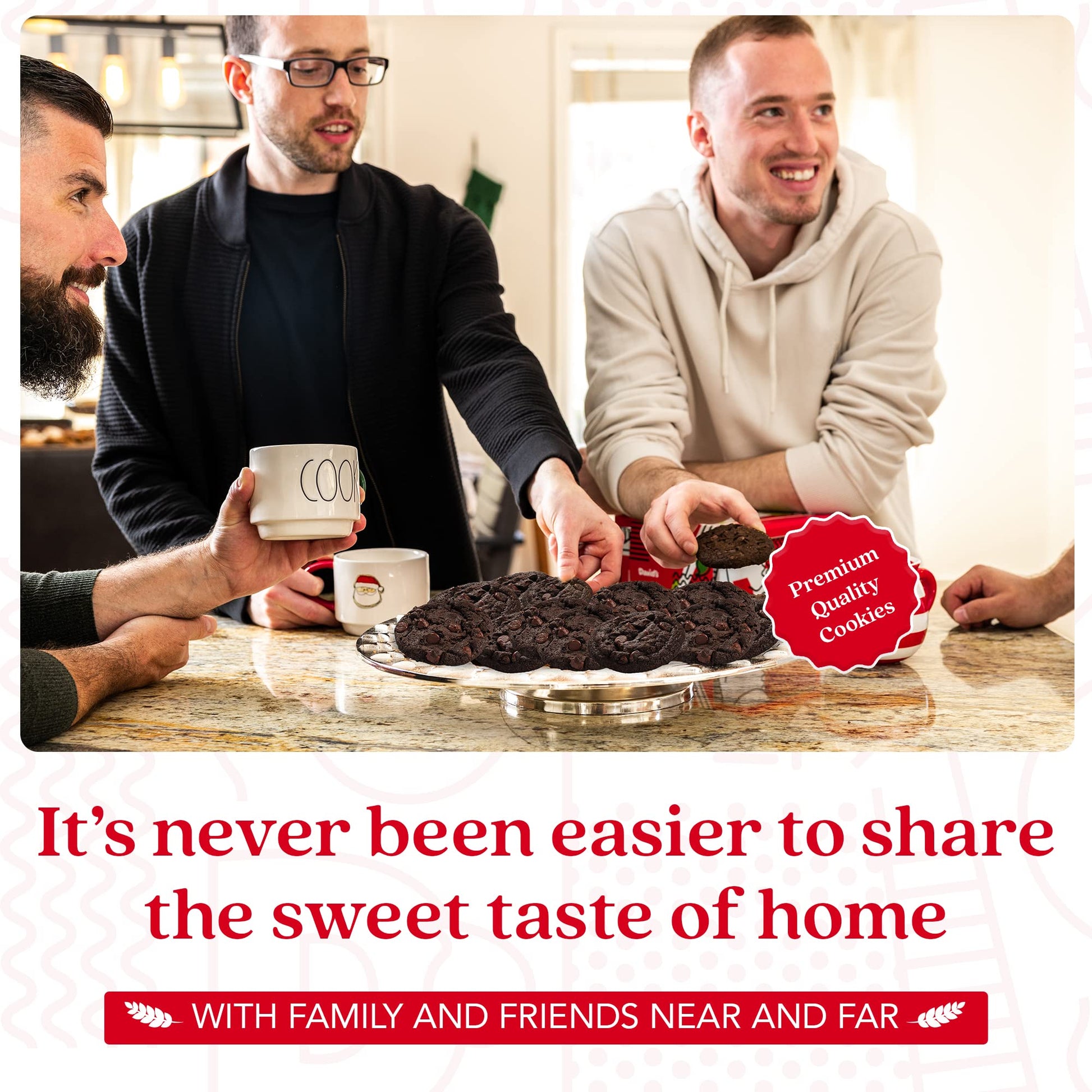 This gift tin features 12 delicious, soft-baked Double Chocolate Chunk cookies, crafted with care using high-quality ingredients. David’s Cookies are made with no additional preservatives or additives, ensuring an all-natural product that is baked fresh daily for a homemade taste reminiscent of traditional recipes. Each cookie is made with creamy butter, pure vanilla, whole nuts, and rich chocolate, providing a satisfying and indulgent experience.