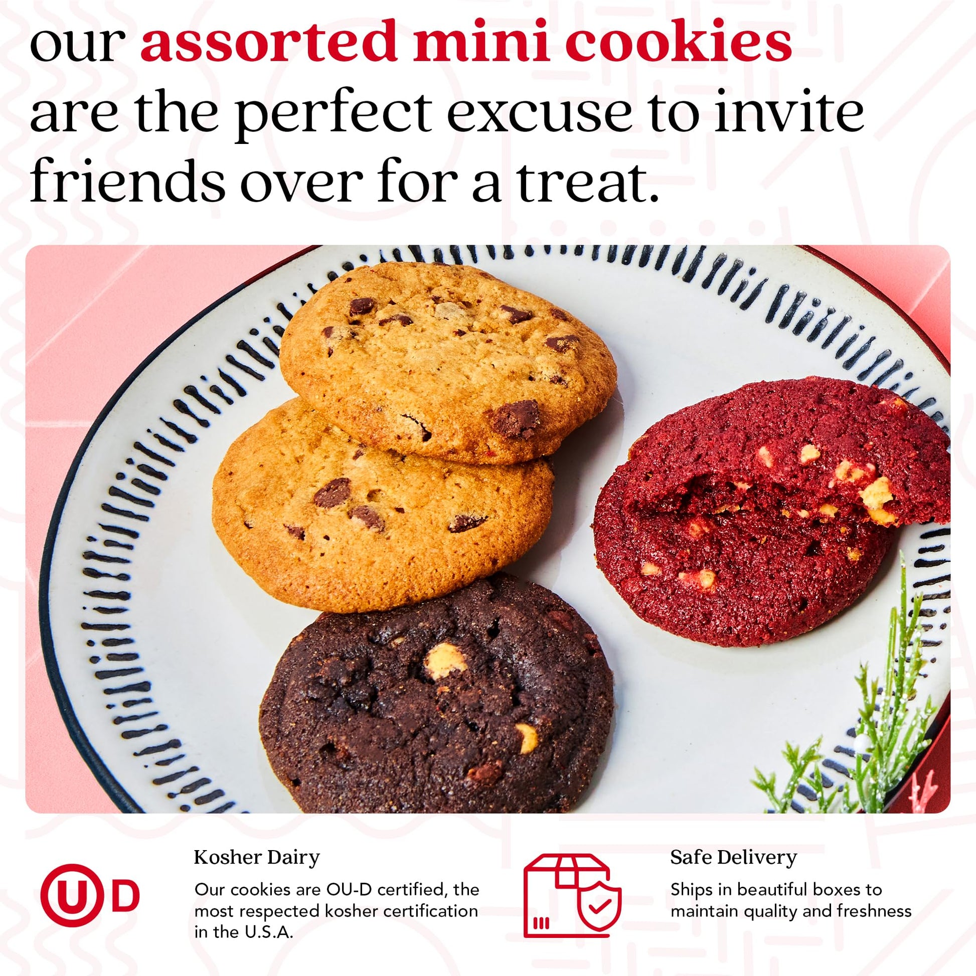 Davids Cookies Fresh-Baked Sweet Sampler Mini Bites Tin - 14oz Assorted Mini Cookies with Chocolate Chip, Chocolate & White Cho