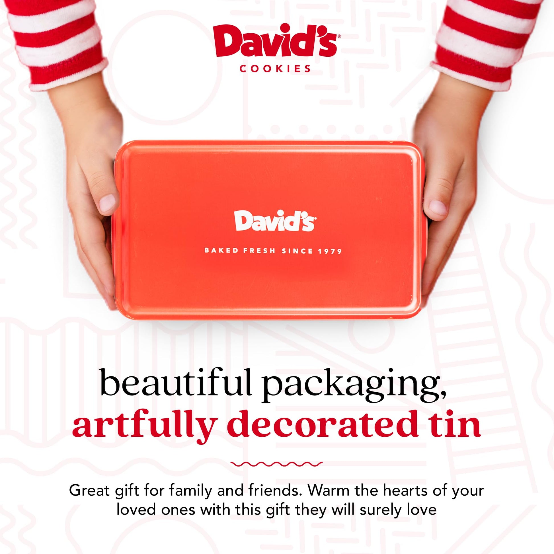 Davids Cookies Sweet Sampler Assorted Fresh Baked Cookies Tin - 8 Count | Chocolate Chunk, Peanut Butter Chip, Double Chocolate