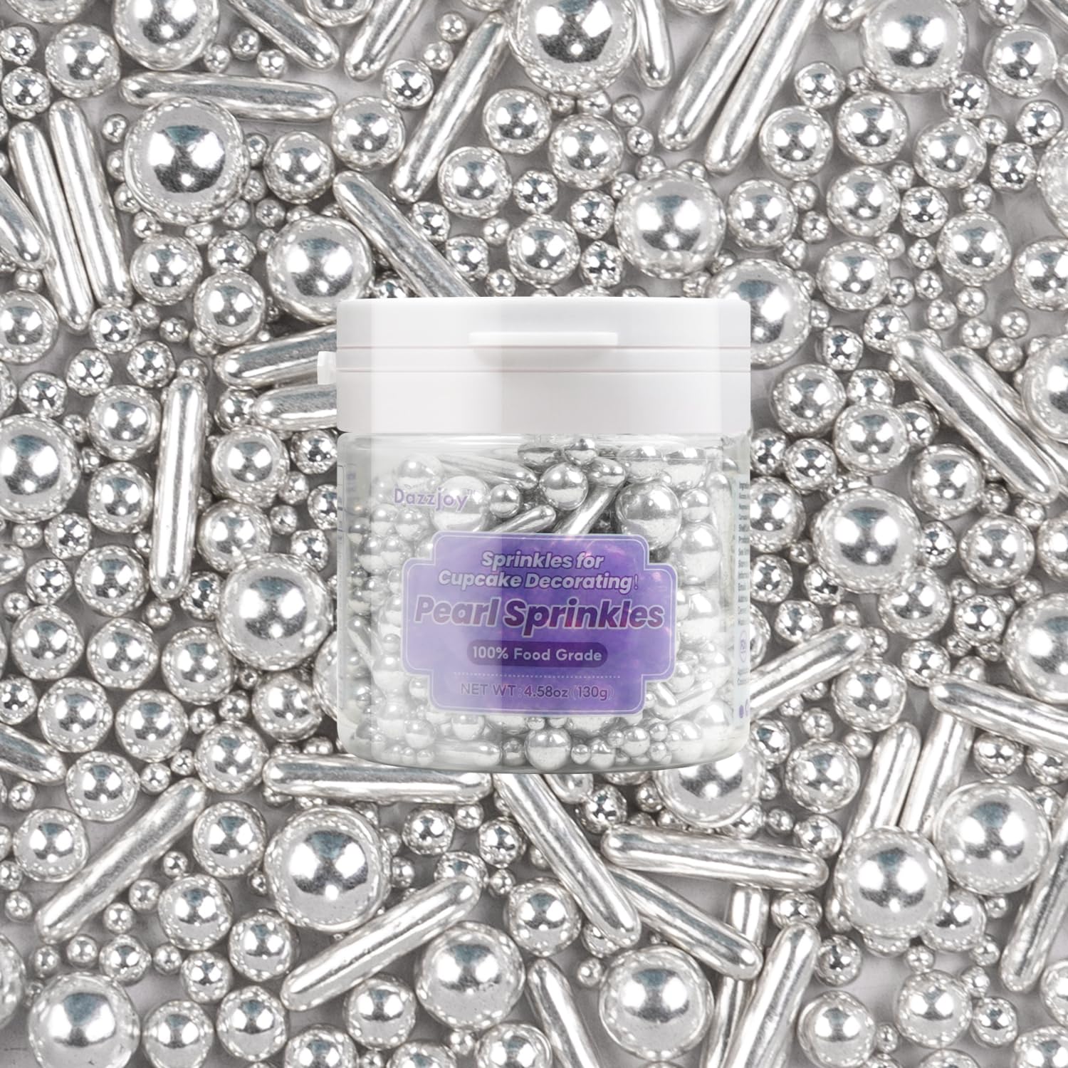 Q: Are these sprinkles safe for my dietary needs?A: Yes, Dazzjoy Silver Pearl Sprinkles are produced under food-safe standards and are free from common allergens. They are also certified Kosher and Halal, making them suitable for a wide range of dietary restrictions.