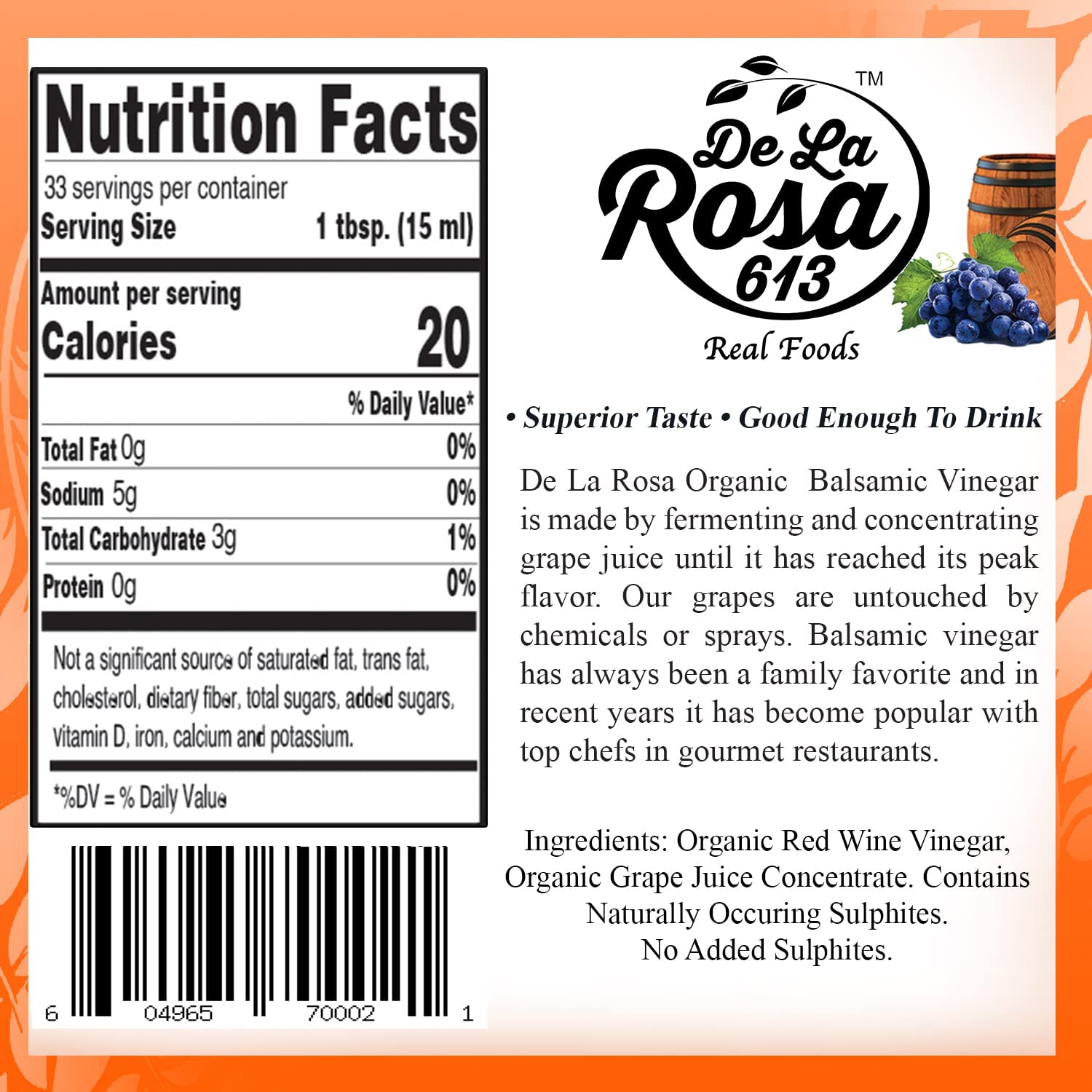 - Q: What makes the De La Rosa vinegar different from regular vinegar? A: De La Rosa Balsamic and White Balsamic Vinegar are made from fermented and concentrated grape juice, resulting in a rich flavor profile that is more complex and fruity compared to regular vinegars, making them ideal for enhancing salads and dishes.