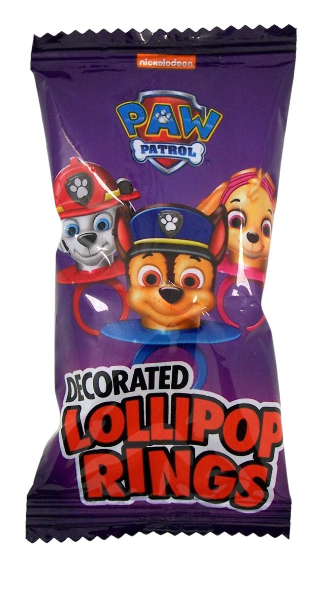 Decorated Lollipop Rings - Box Of 18 Lollipops, With 3 Assorted Flavors - Marshall The Dalmatian - Watermelon Flavored - Chase The German Shepherd - Blue Raspberry Flavored - Skye The Cockapoo - Strawberry Flavored