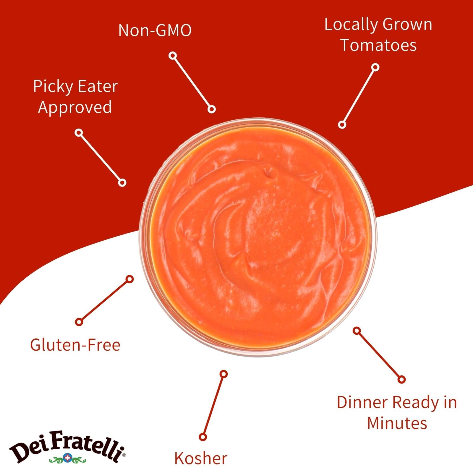 Q: Are the ingredients in Dei Fratelli Tomato Soup safe for my family?A: Absolutely! Dei Fratelli Tomato Soup is preservative-free, gluten-free, and nearly all recipes are Non-GMO Project Verified. The company also ensures that all cans are made with a non-BPA lining for added safety.